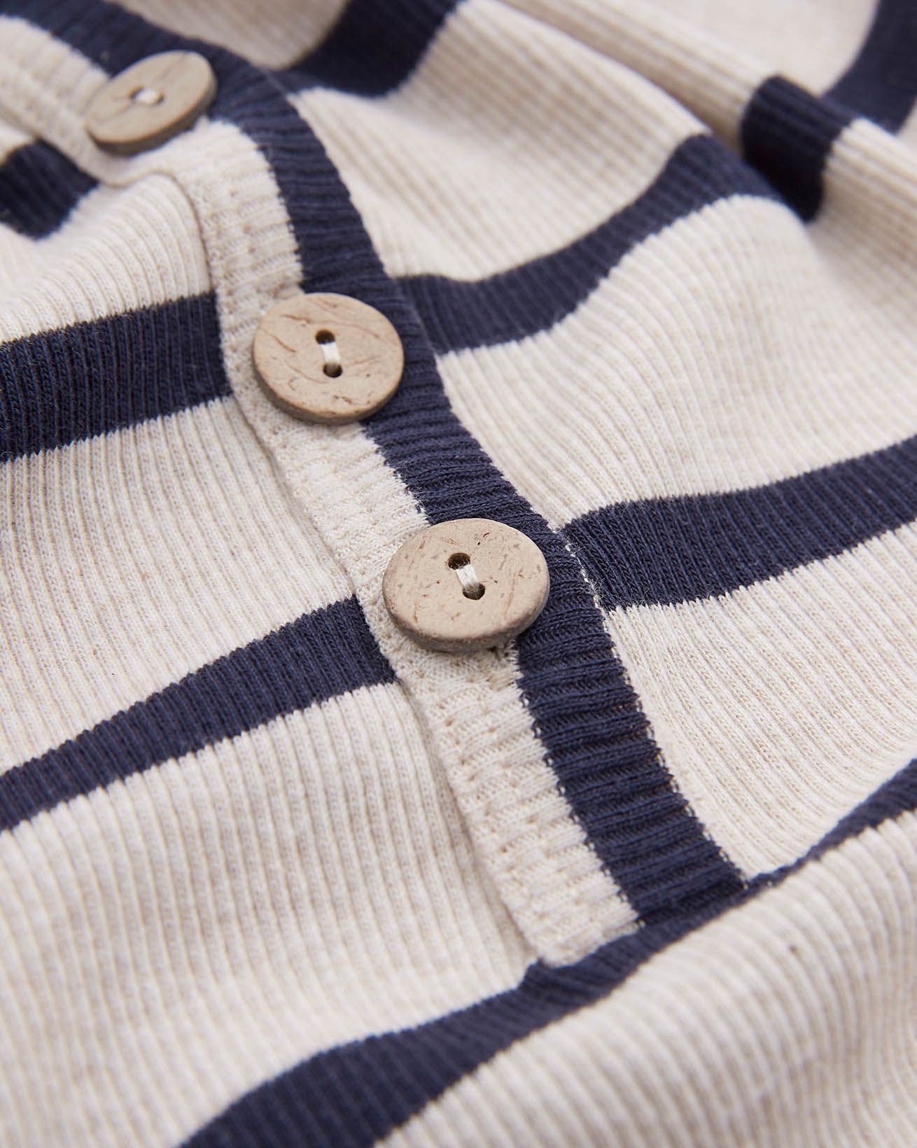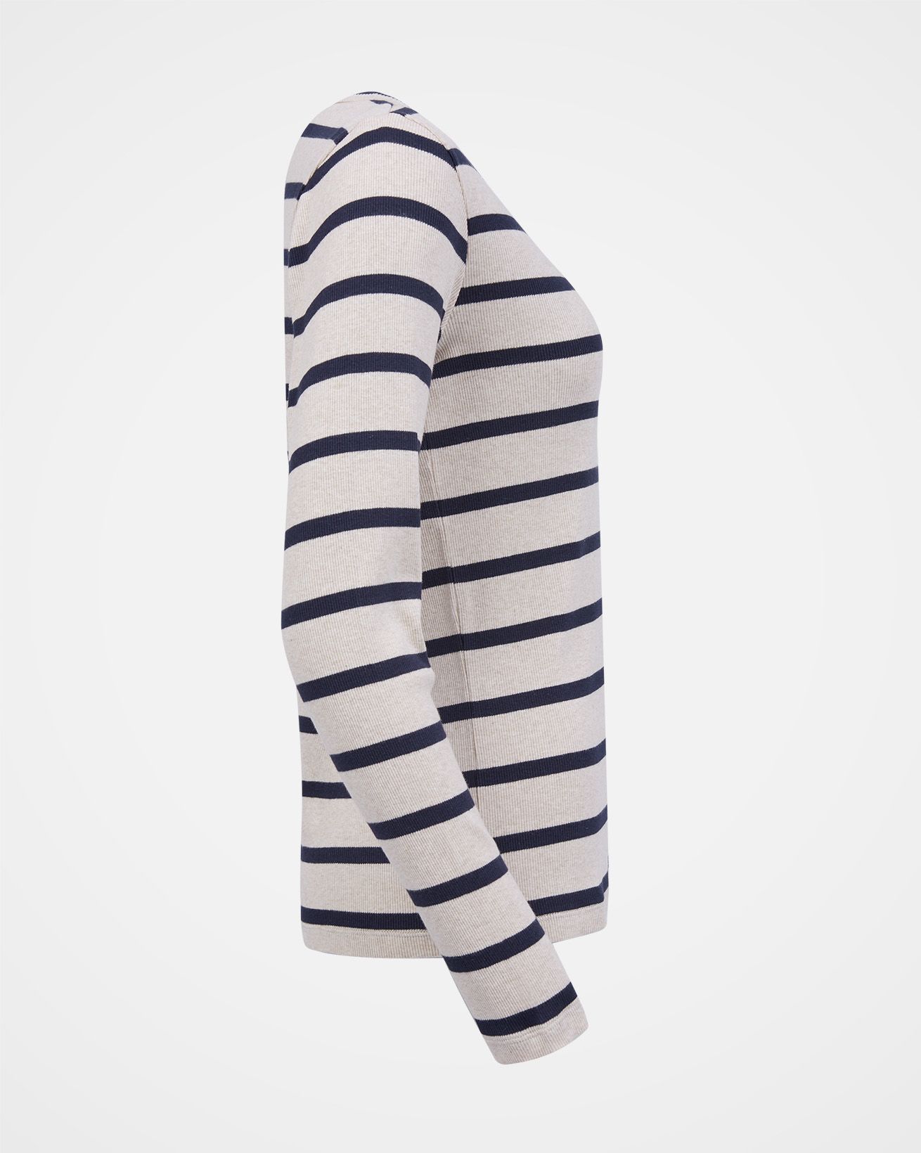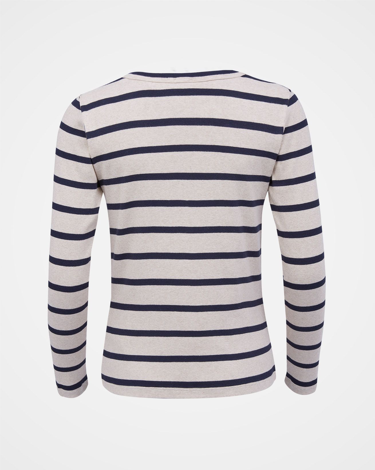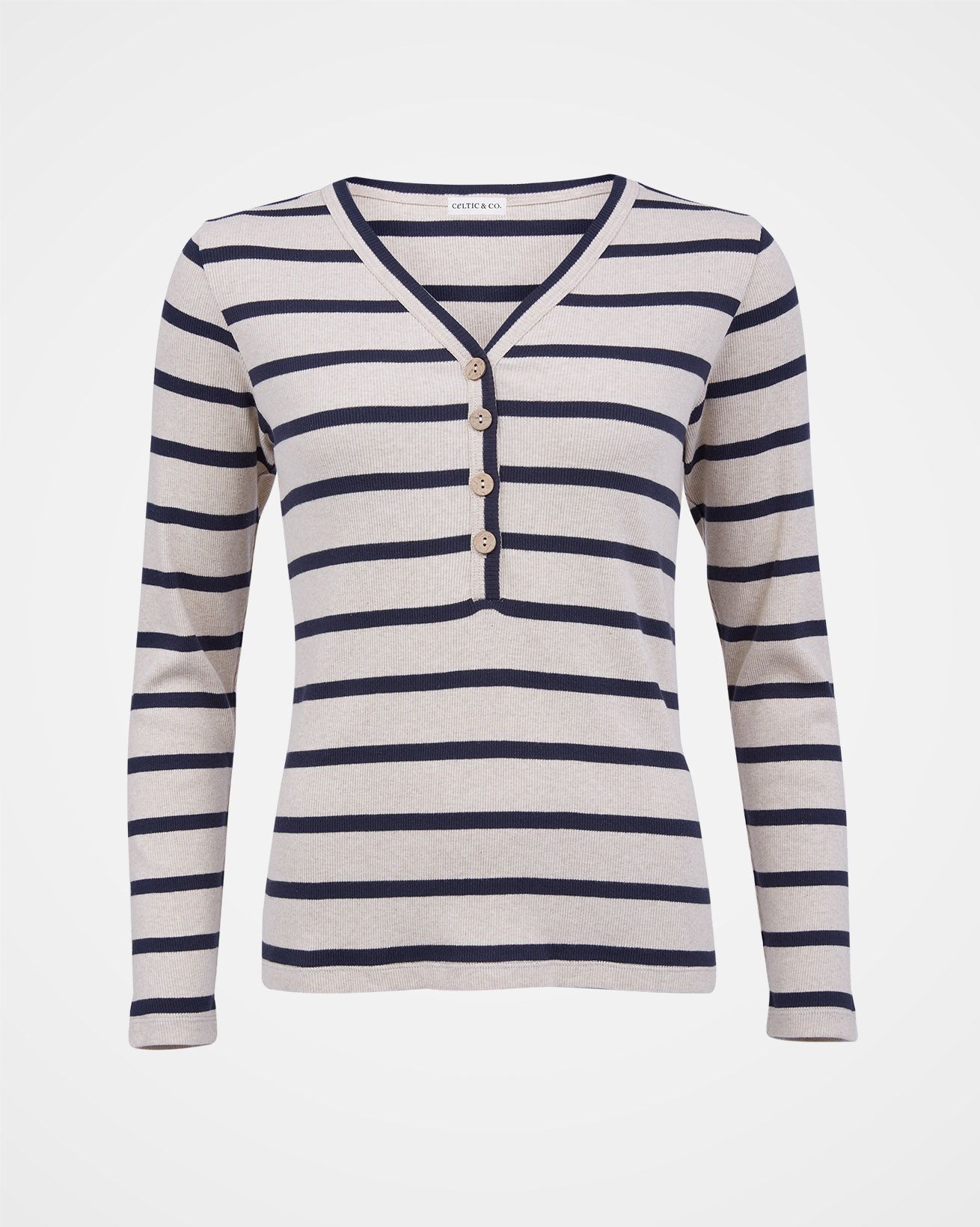 This ribbed jersey, half placket top features a deep v-neckline and undyed wooden button detailing. Finishing at the hip with flattering long sleeves, it is crafted from soft, textured melange fabric that hugs the body in a slimmer fit and has lots of comfy give and movability.