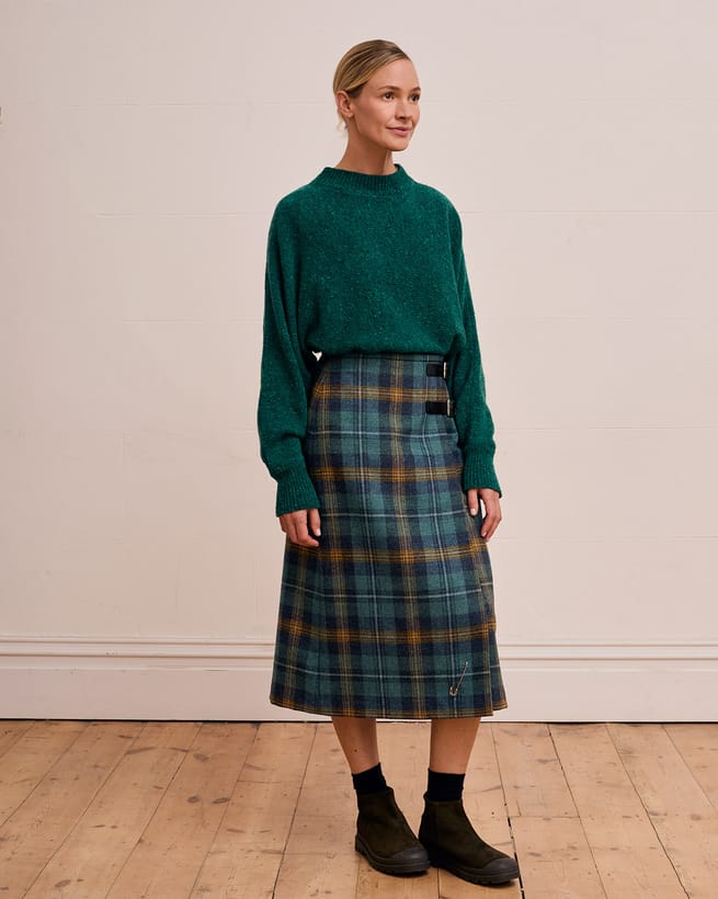 Updating a season essential with a Celtic flavour, this scarf is crafted in Yorkshire from pure merino which feels luxuriously soft against the skin and keeps you well insulated against cold winds. Choose from a host of colourful tartans to add character to your look the easy way. Finished with fringing along the edges, this scarf drapes beautifully over laid-back daywear, adding cosy colour to a simple ensemble.