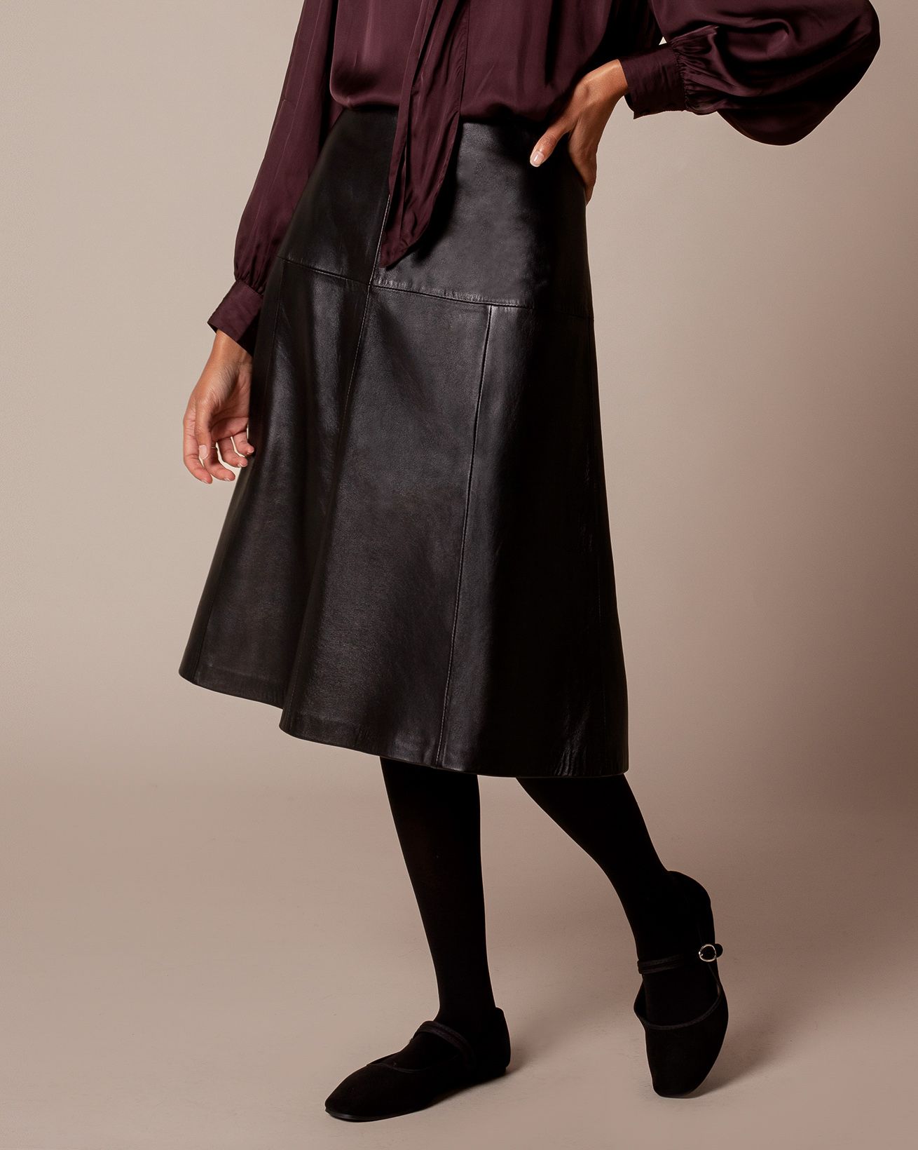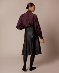 This A-line midi skirt is crafted from supple Sheep Nappa Leather. It features a zip fastening at the centre back with grosgrain binding inside the waistband, and is fully lined for comfort.