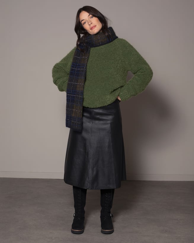 This A-line midi skirt is crafted from supple Sheep Nappa Leather. It features a zip fastening at the centre back with grosgrain binding inside the waistband, and is fully lined for comfort.
