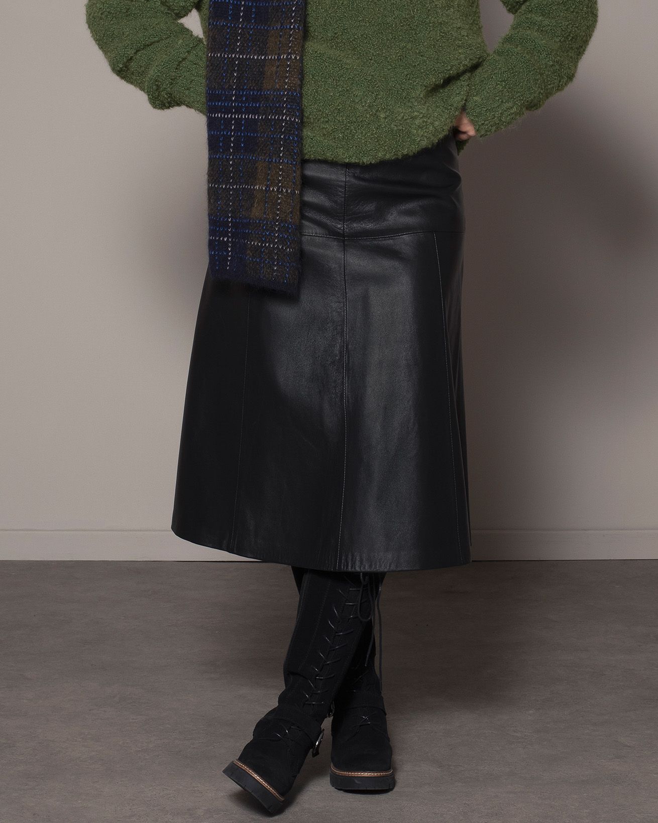 This A-line midi skirt is crafted from supple Sheep Nappa Leather. It features a zip fastening at the centre back with grosgrain binding inside the waistband, and is fully lined for comfort.