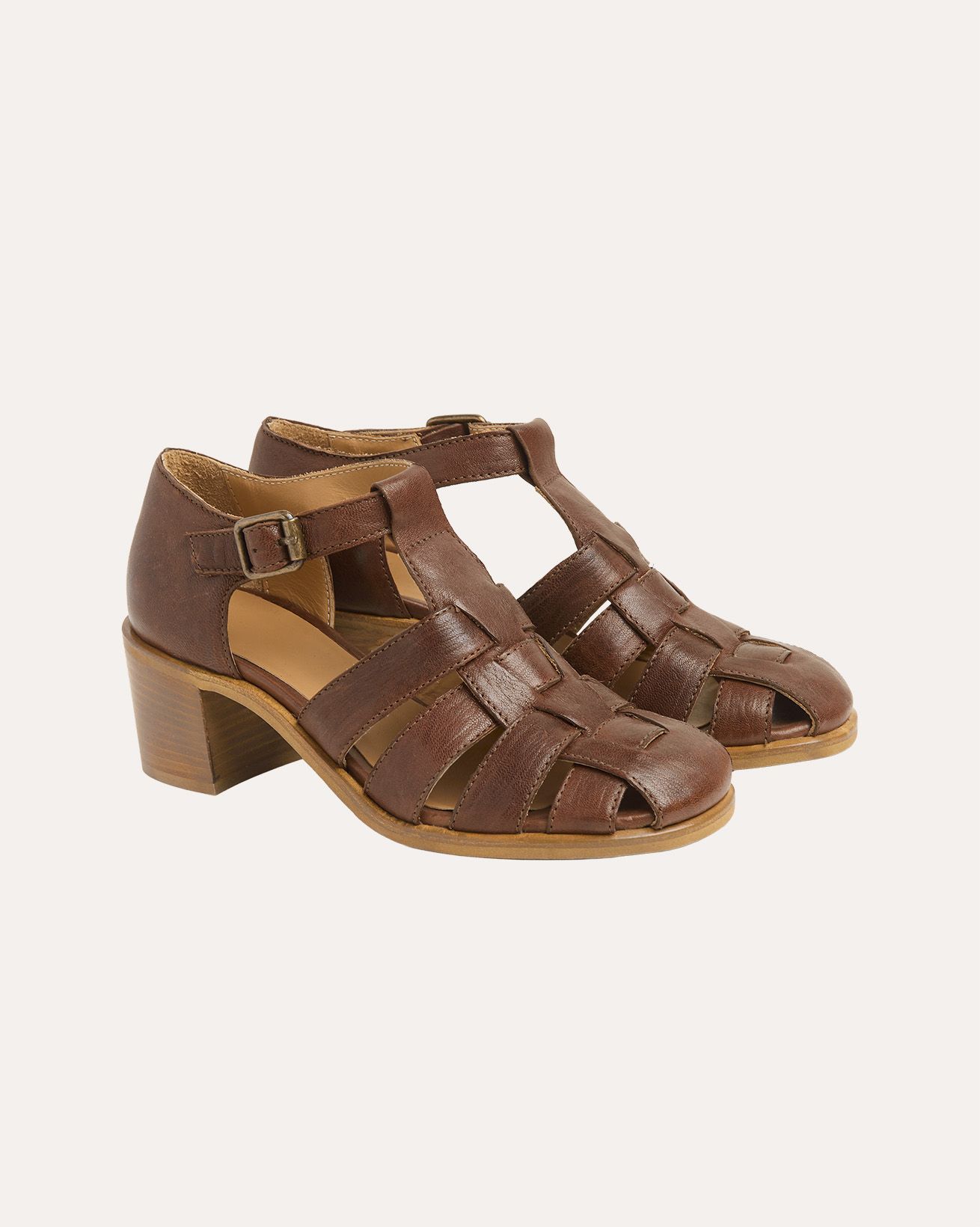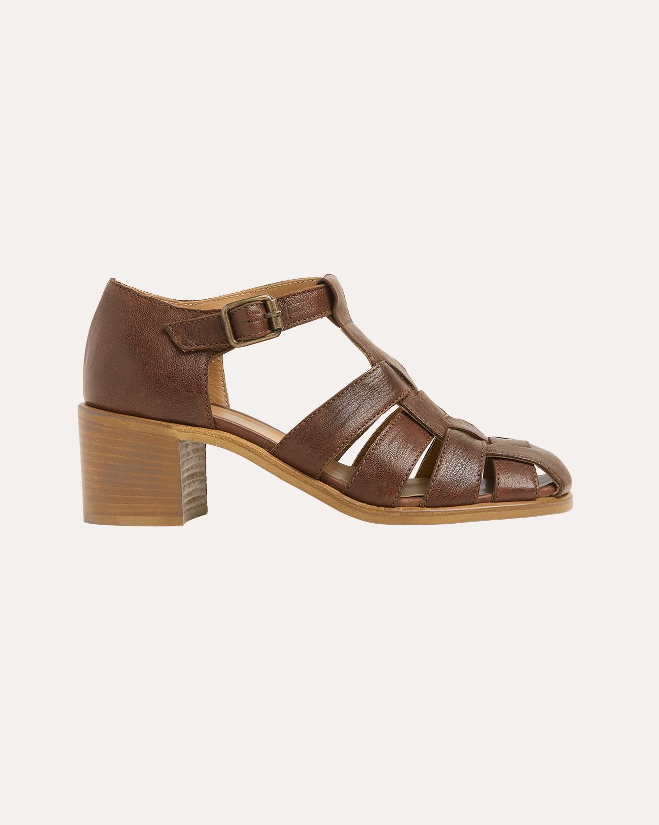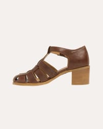 The T Bar Fishermans Sandal features classic fisherman-style strapping and a secure buckled ankle strap, offering both comfort and support. Set on a sturdy block heel, this sandal blends traditional design with enduring quality, perfect for warm days when a reliable, natural footwear choice is needed.