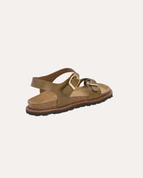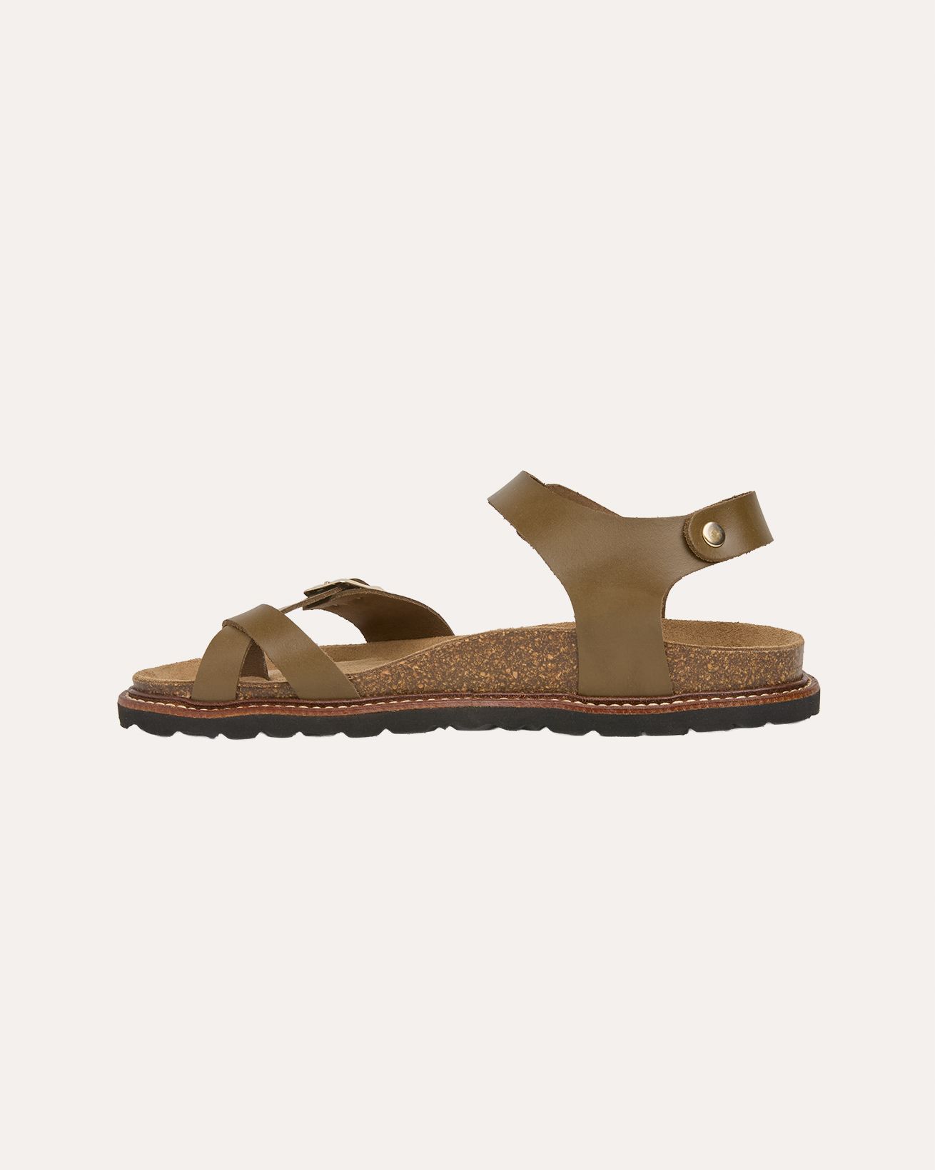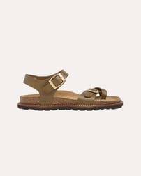 This sandal features a distinctive cross-over toe detail and a secure two-part strap with metal buckles, combining simplicity with refined design. Crafted to offer comfort and durability, it reflects a commitment to natural materials and enduring quality, perfect for those seeking understated sophistication in their footwear.
