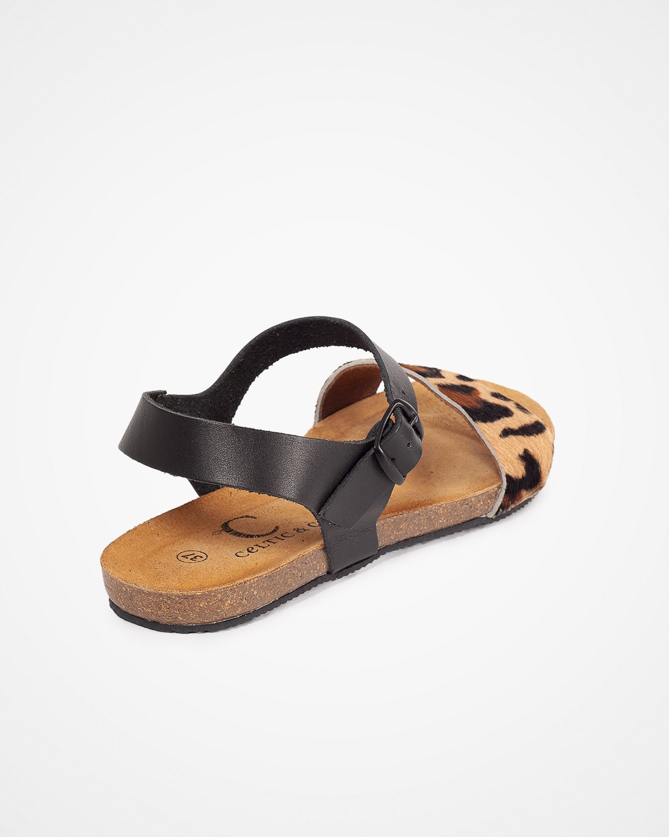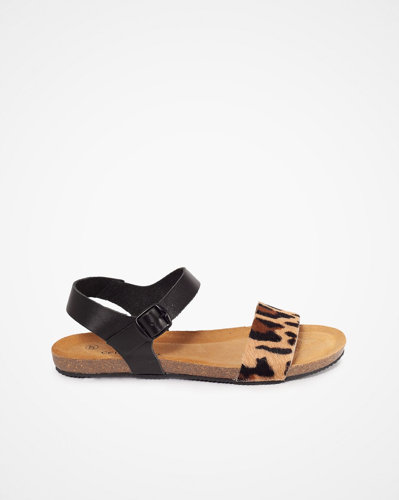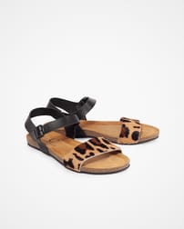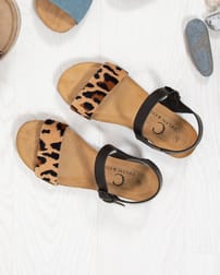 Set on a rubber outsole for dependable durability, our leather sandals feature barely there strapwork incorporating a flash of leopard at the toe with a fun, textured finish.