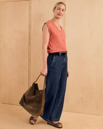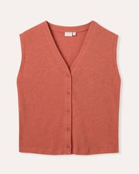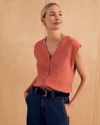 The Linen Blend Button-Through Top pairs a breathable linen–cotton blend with a relaxed fit for effortless, everyday comfort. Designed with a flattering v-neckline, capped sleeves, and a full button-through front, it’s an easy, polished piece for warm-weather styling.