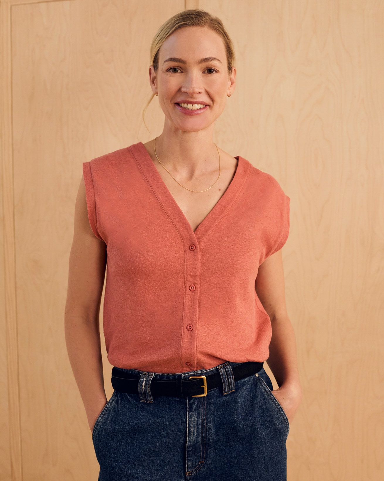 Linen Blend Button Through Top
