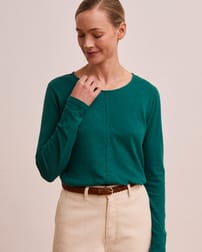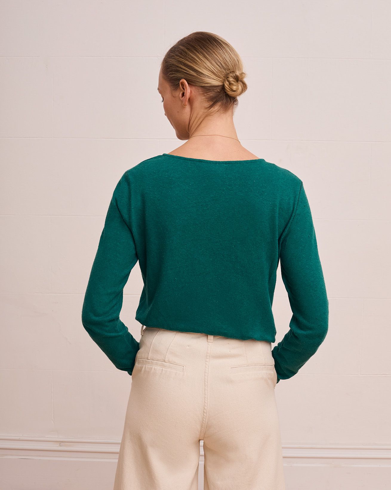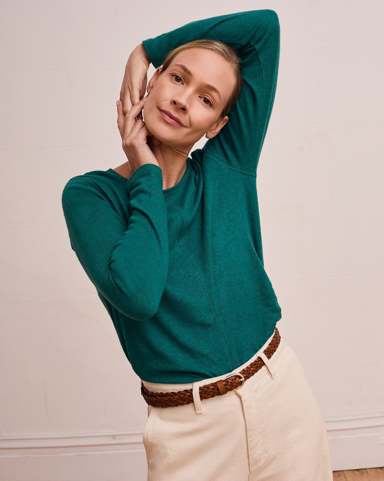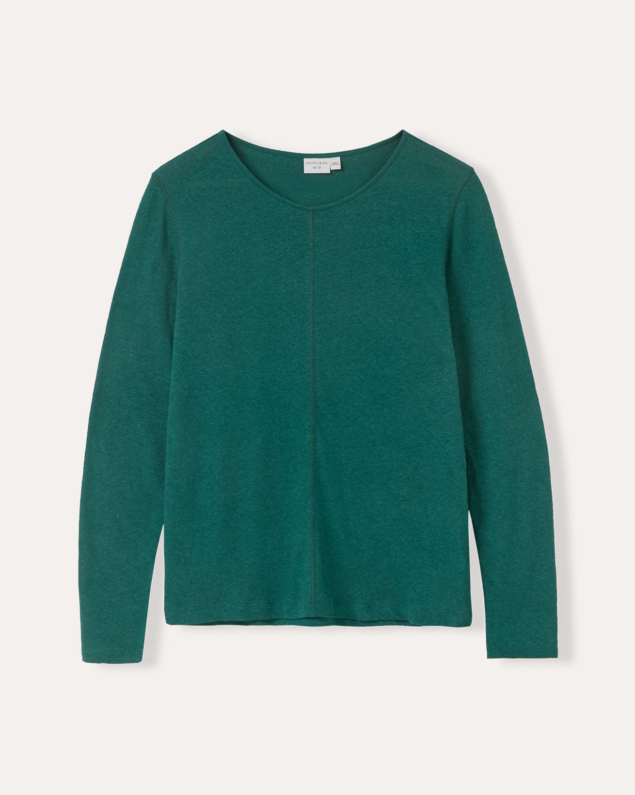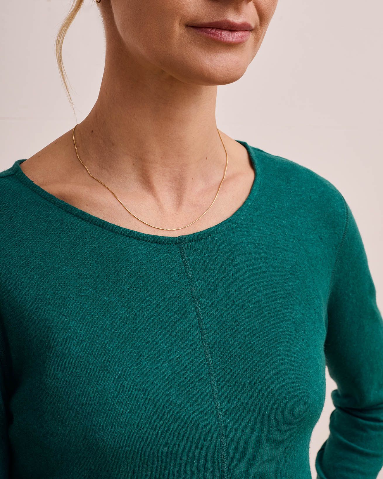 Featuring a classic crew neckline and straight fit, this long sleeve tee is finished with flat lock stitching for subtle detail. The linen blend fabric adds a touch of natural texture and breathability, perfect for comfortable layering.