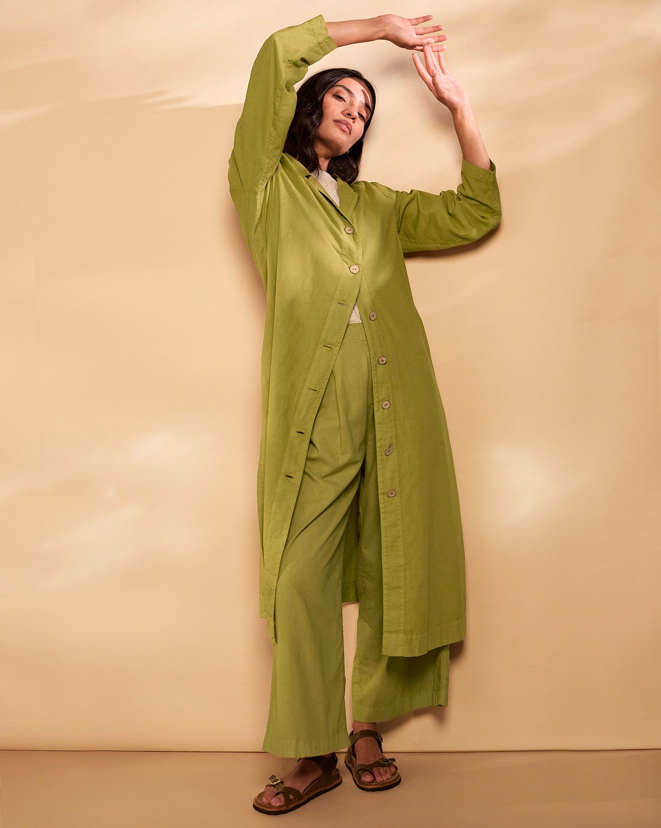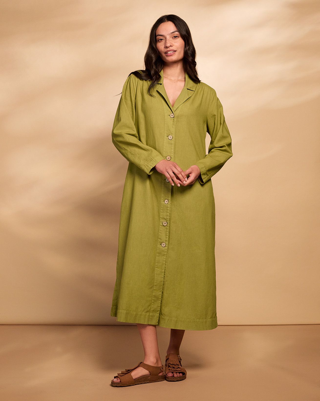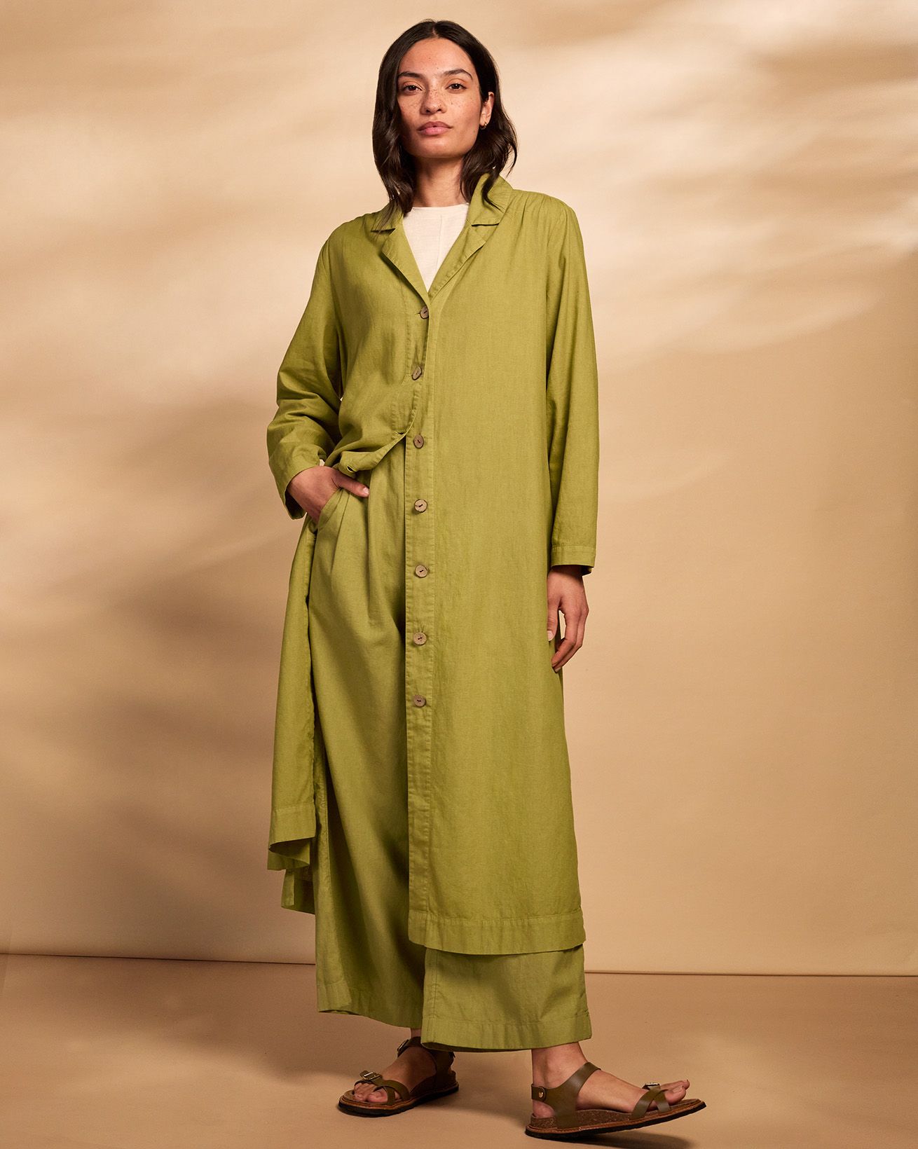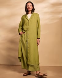 Linen Blend Longline Overshirt Dress