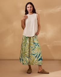 Linen Blend Palm Print Culottes