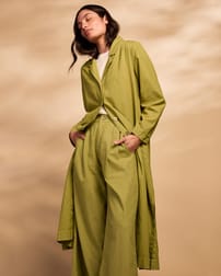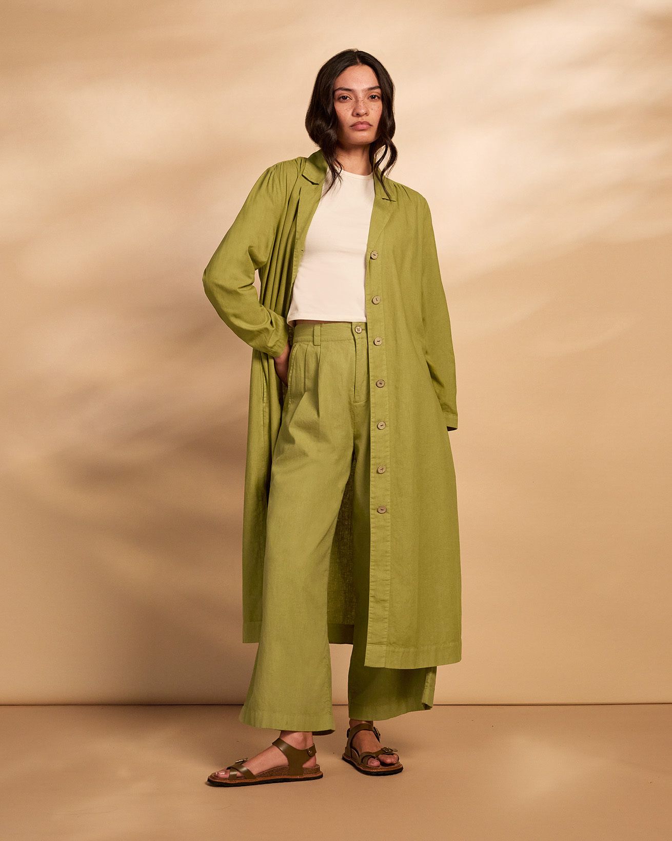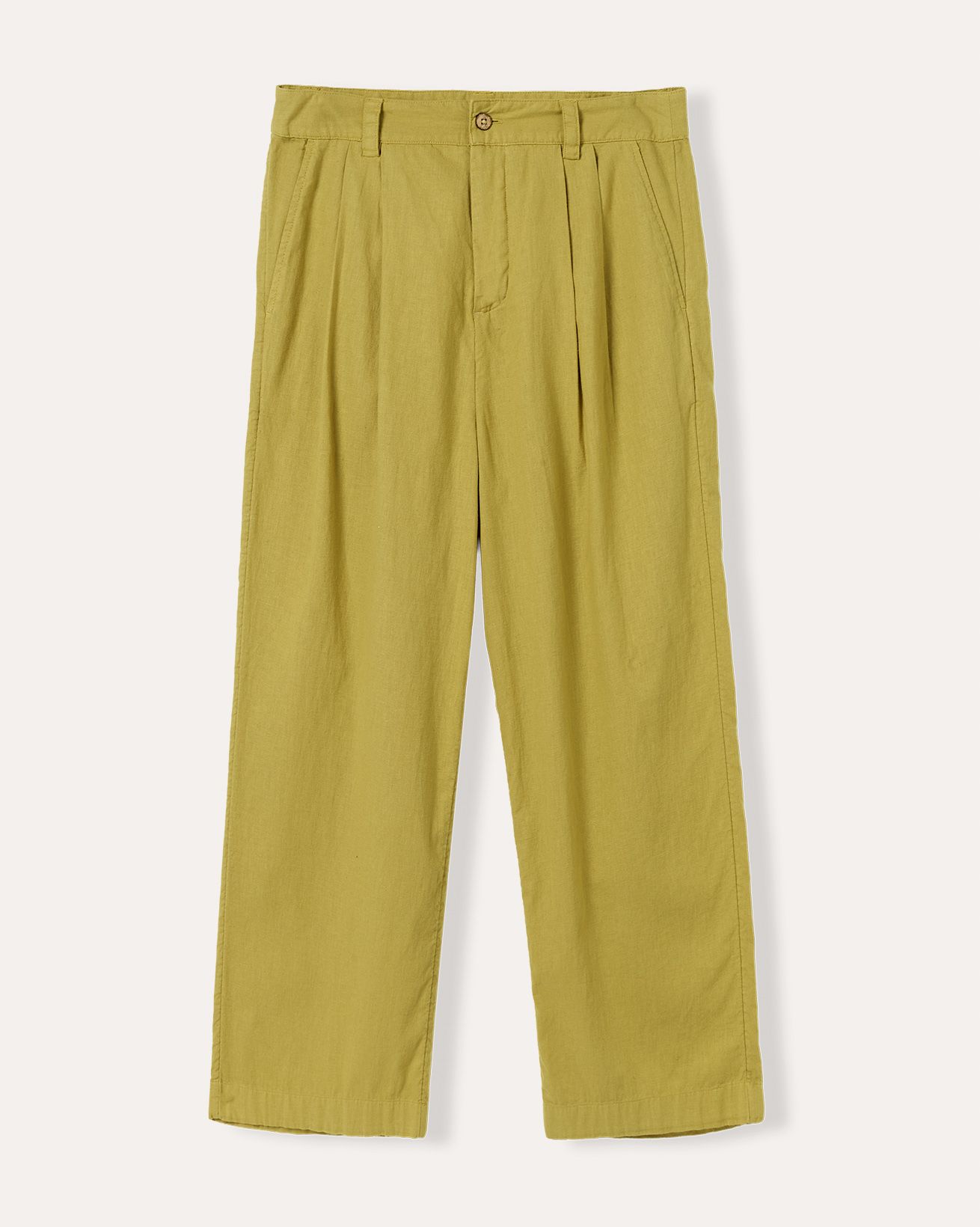 These tapered crop trousers feature subtle pleat detailing and practical front and back pockets, finished with a discreet zip fastening. Garment dyed in small batches after construction, this process minimises fabric waste by up to 15%, reflecting a thoughtful approach to production without compromising on quality or comfort.