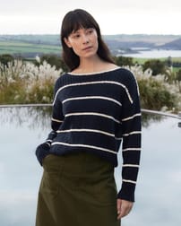 Linen Blend Stripe Boat Neck Jumper