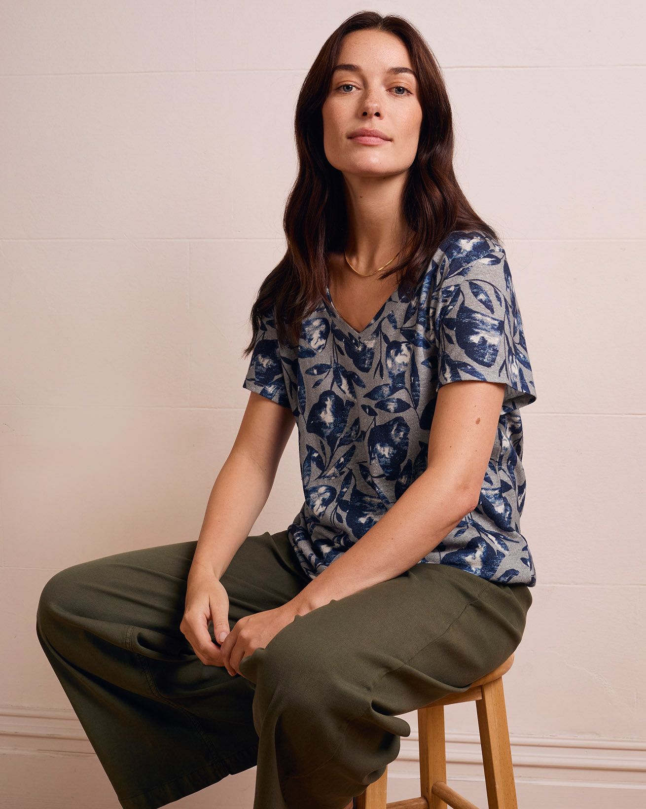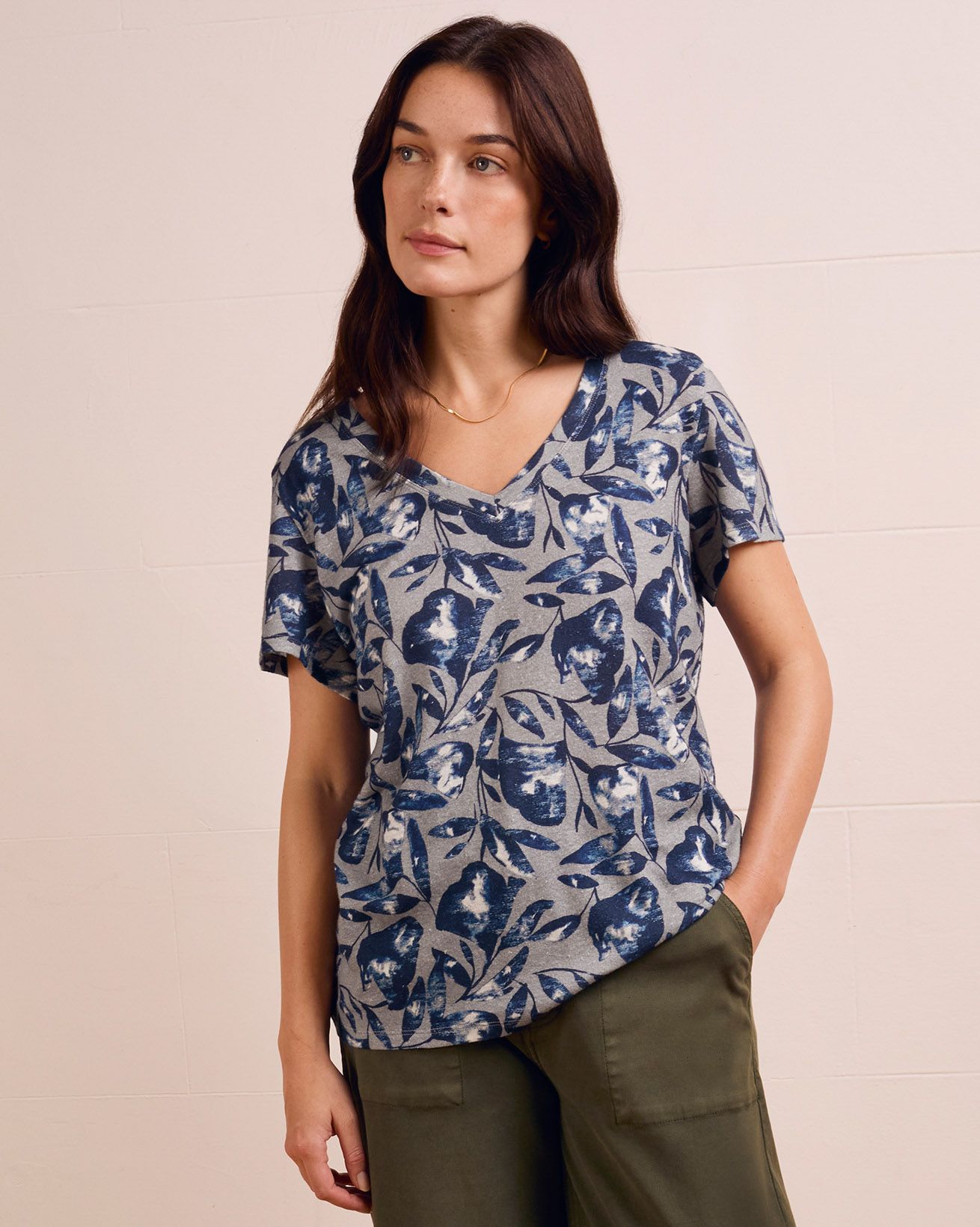 Effortless style meets comfort in our Linen Blend V Neck T-Shirt. Made from our classic linen and organic cotton blend jersey, it features a beautiful textured slub in the fabric. With an elegant V neckline and set-in short sleeves, it offers an easy fit for your daily wear. Whether you're dressing up or down, this T-shirt is a timeless addition to your wardrobe.