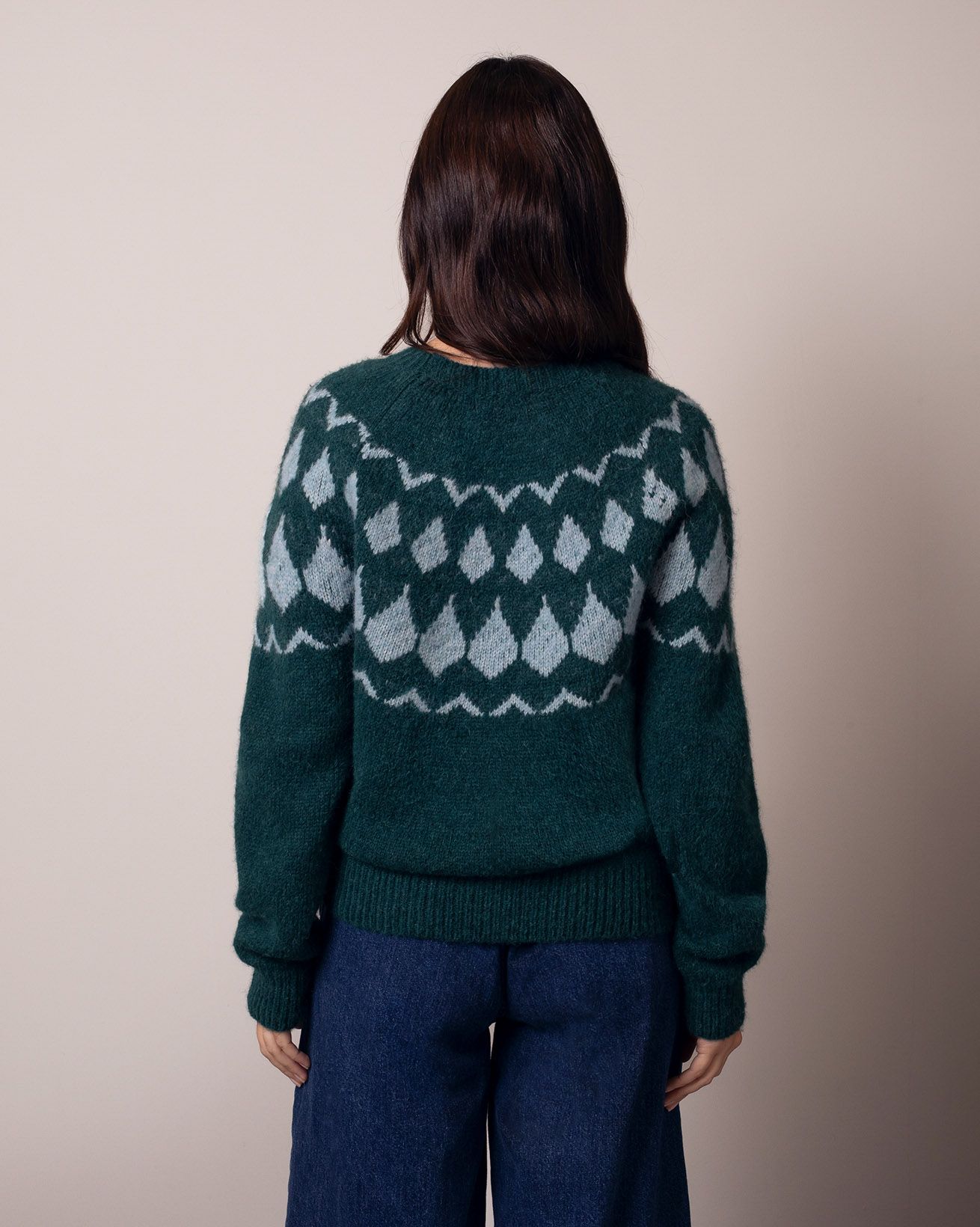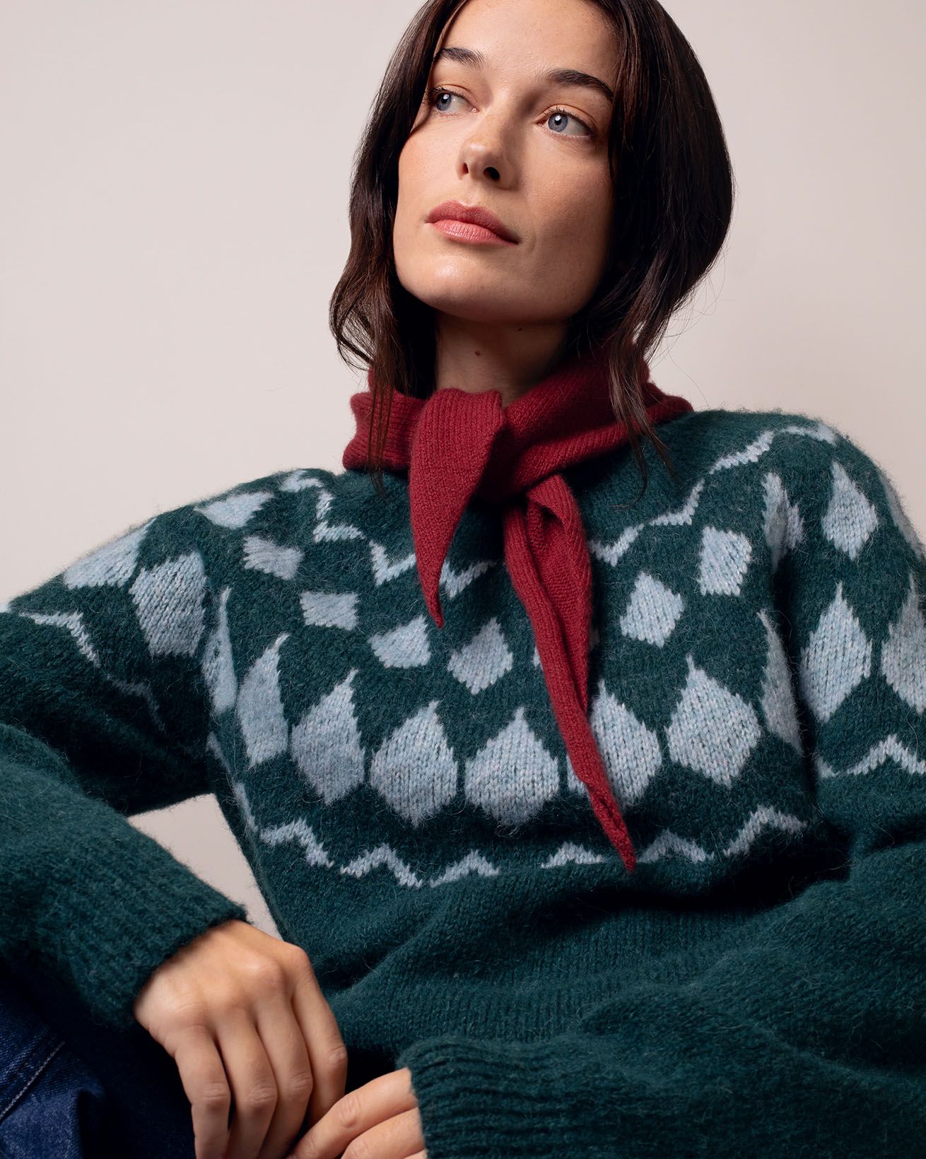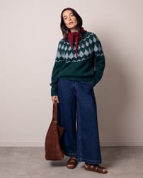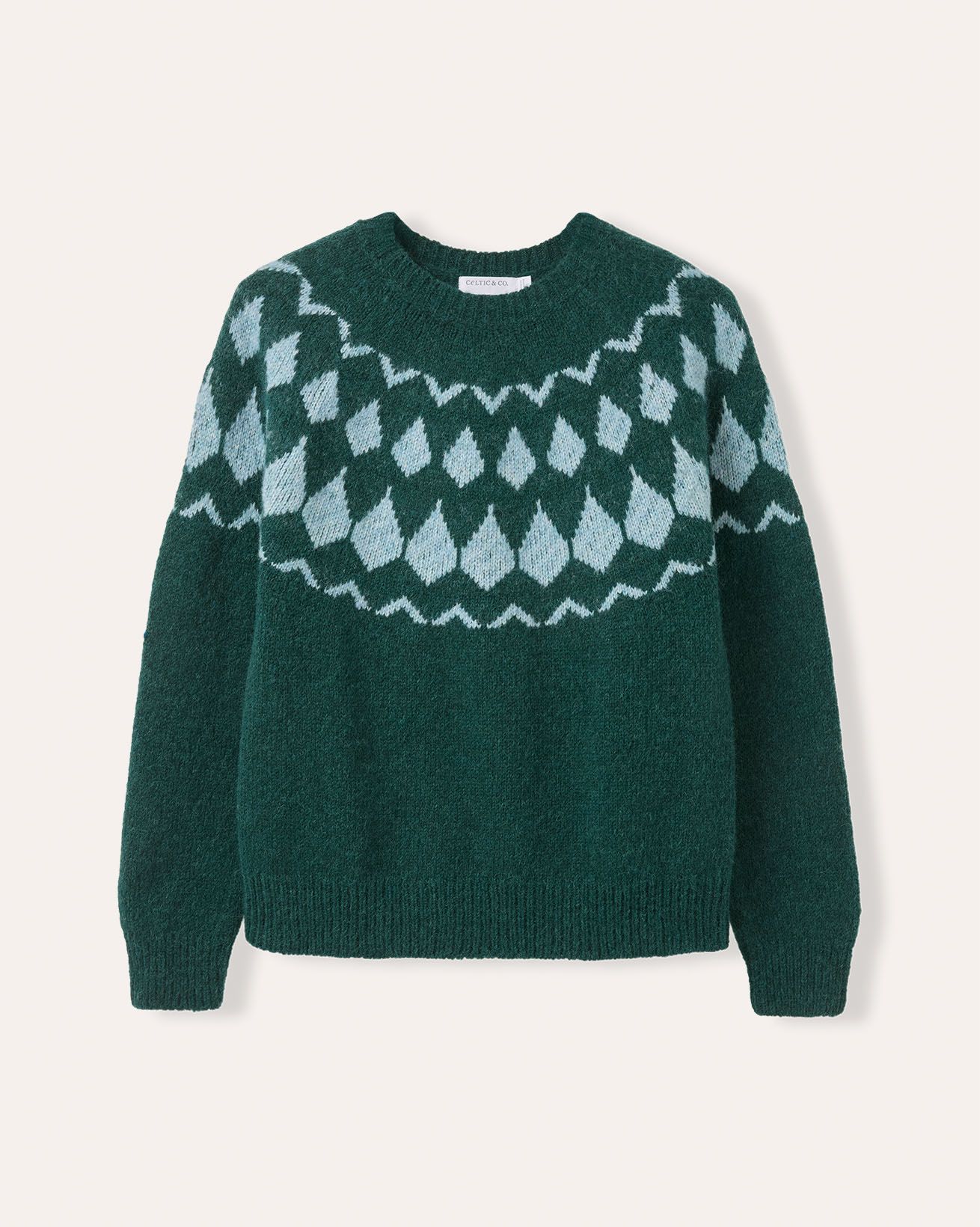 Crafted from a luxurious blend of alpaca, merino and cotton, this relaxed-fit jumper features a distinctive diamond motif fair isle yoke and ribbed trims. Its lofty yarn ensures enduring comfort through the cool new season and into spring, offering a refined choice that reflects thoughtful material selection and lasting quality.