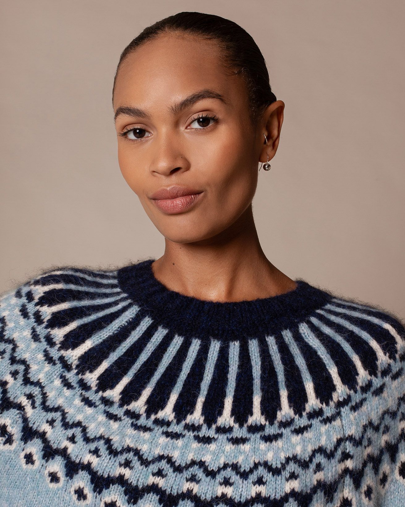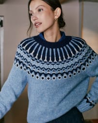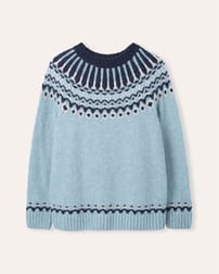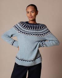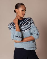 Made from a luxurious blend of baby alpaca, merino and cotton, this jumper features a bold Fair Isle pattern across the yoke. Additional patterning above the ribbed hem and cuffs adds depth to the design, while the crew neckline offers a classic, easy-to-layer silhouette.
