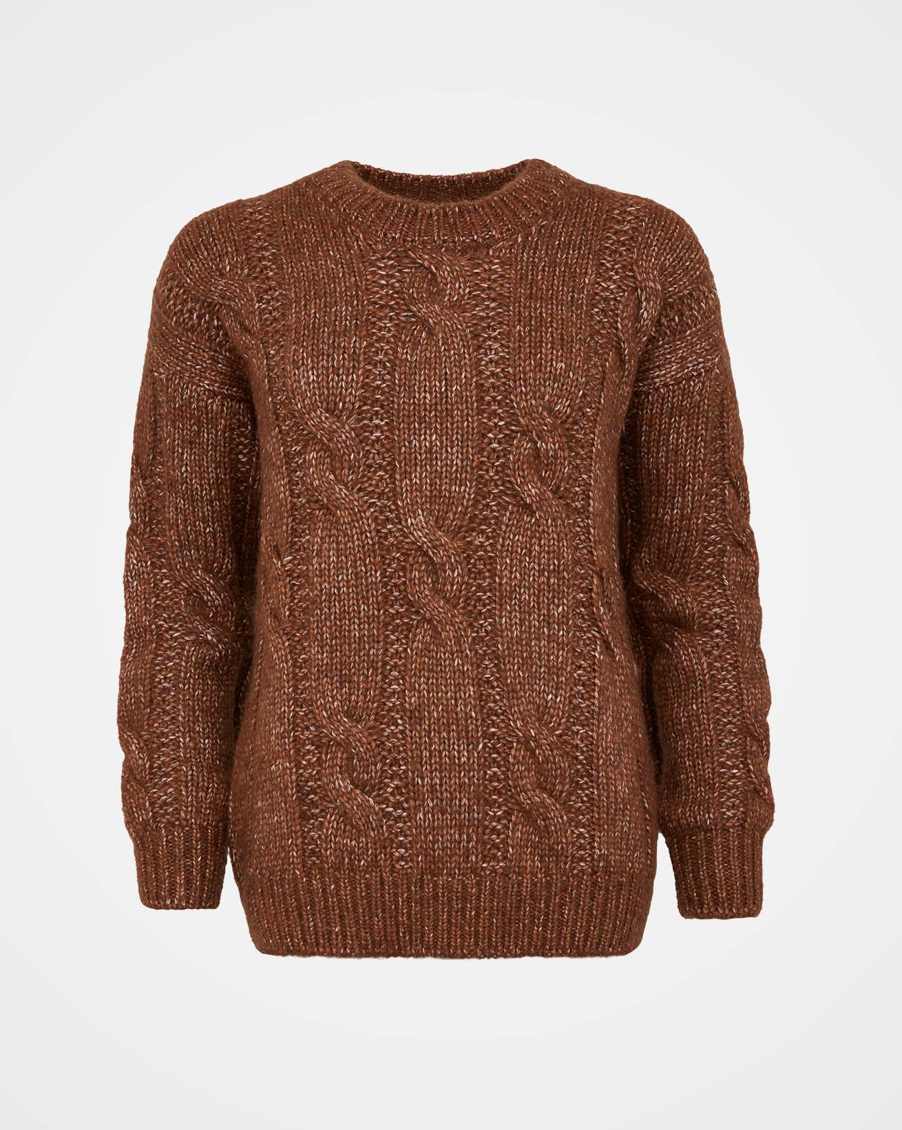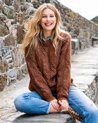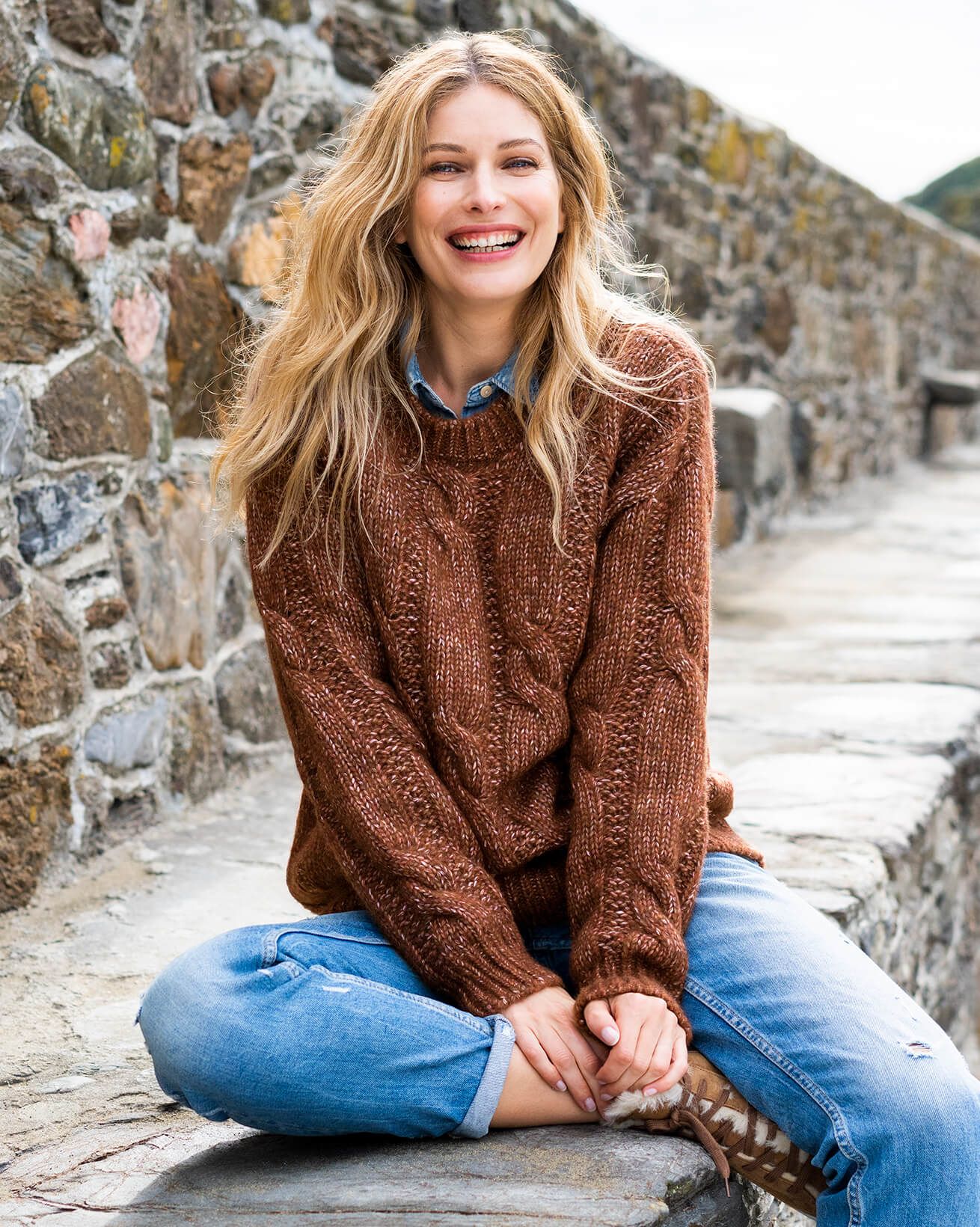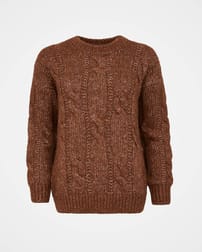 The super-sized cabling is framed with soft ribbing, while a dropped shoulder gives a relaxed shape that couldn't be easier to wear.