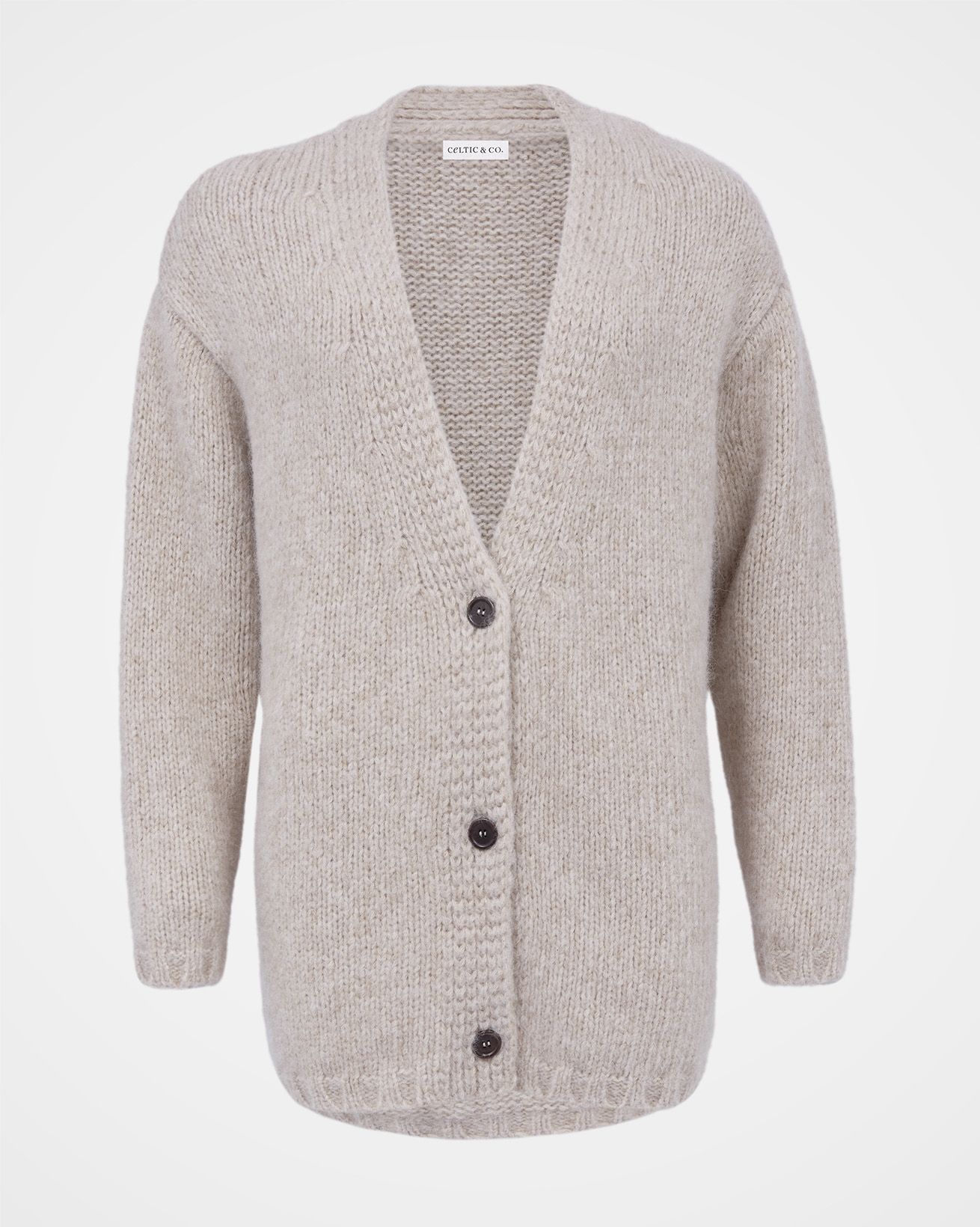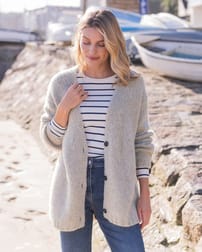 Made from super squishy and lofty yarn, this luxurious cardigan features a touch of alpaca making it incredibly cosy, and virgin wool which is breathable and soft. The stylish, slouchy nature of this knit makes it easy to pair with both dresses and jeans, and we’ve designed it to be worn throughout the seasons. Details include a deep v-neckline and natural Corozo buttons.