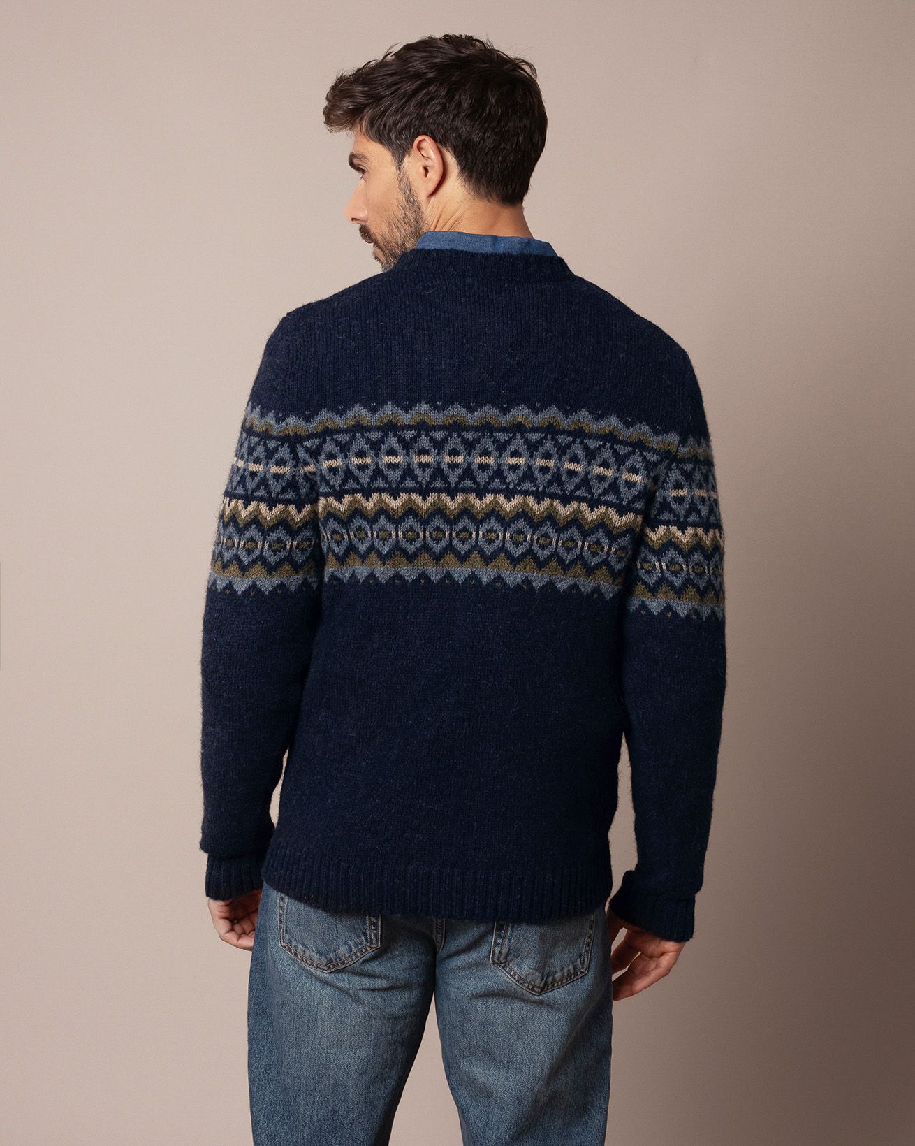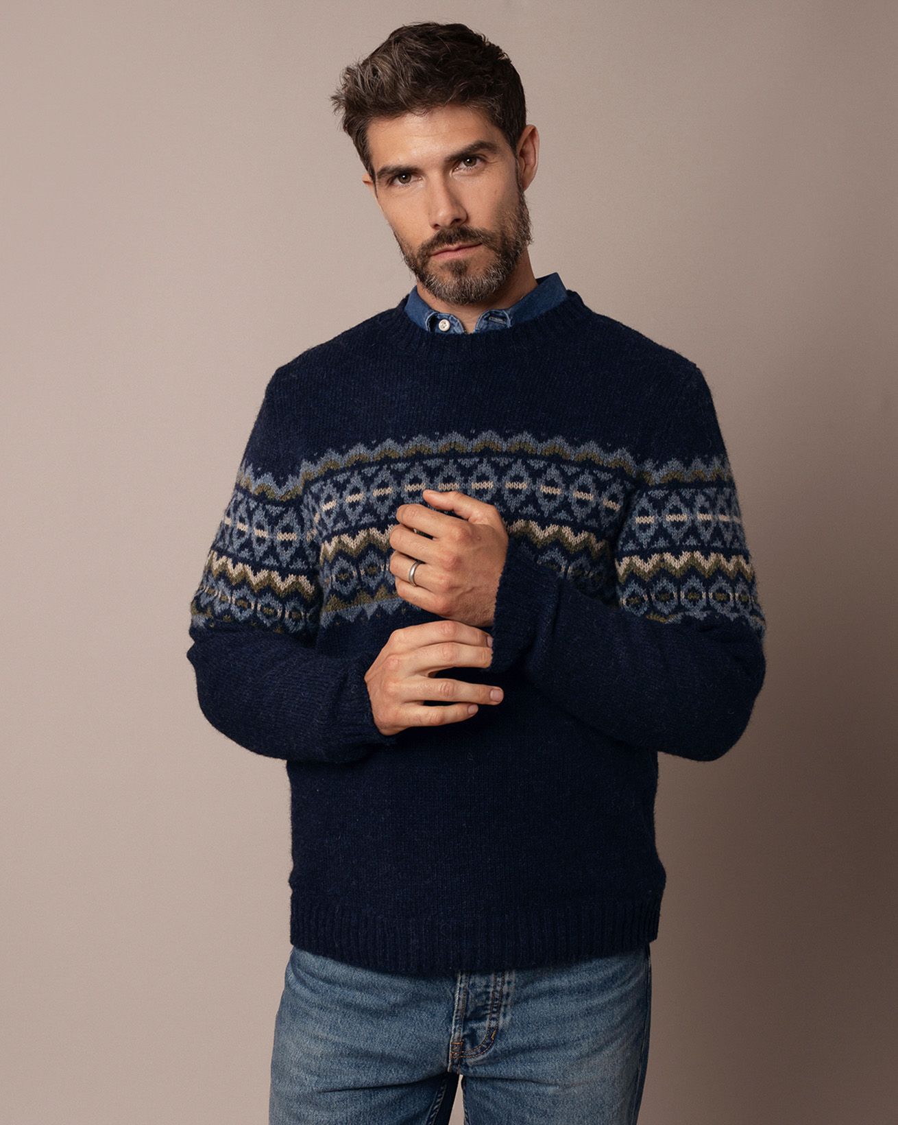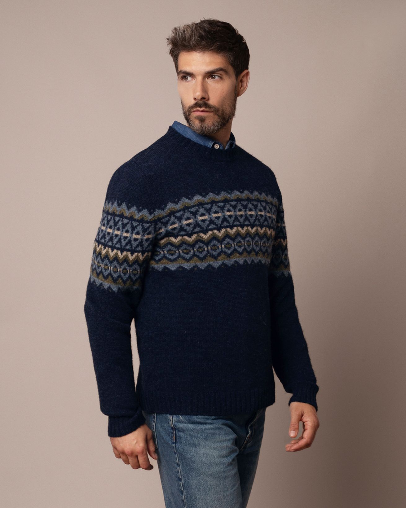 Featuring a Fair Isle pattern made up of diamonds, chevrons and zigzags, this crew-neck jumper is the perfect combination of authentic and contemporary style.