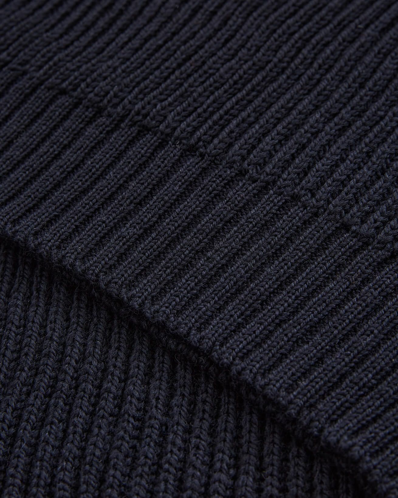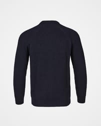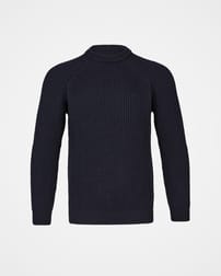 This piece is knitted in pure Merino wool to offer a sturdy ribbed structure with reliable warmth, while a slightly extended crew neckline provides a touch of extra coverage on cooler days.