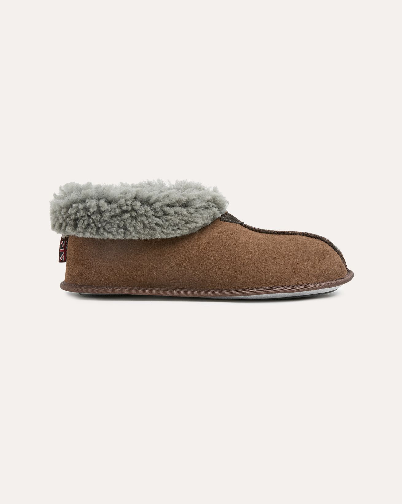 We’ve taken our classic Bootee Slipper to a new cosier level by adding a soft suede sole with textured grippy panels on the bottom. Made to be worn around the house, our sheepskin slippers are a favourite when it comes to loungewear and relaxing. Wear the flexible cuff up for extra warmth or down to reveal the luxurious fluffy lining.