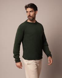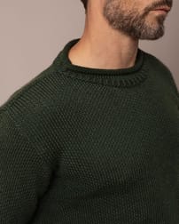 A classic knit made in Ireland to be worn on all occasions, from hikes in the hills to evening drinks. This crew neck jumper features a traditional rolled edge collar, cuffs and hem and is knitted in a textured moss stitch, a technique which makes the jumper subtly stand out from the rest.
