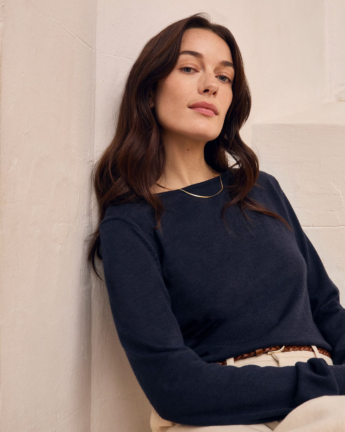 With an elegant boat neckline and neat cut, classic look, this jumper is ideal for everyday wear. Made in Ultrafine Merino wool which helps keep the creases at bay, promote breathability in warmer conditions and generate natural warmth if it's chilly, this jumper provides versatile appeal for all seasons.