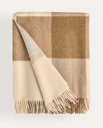 Woven in a heritage weaving mill in the UK is our luxe merino lambswool check throw. Produced in a large, modern, two colour windowpane check, the blanket features fringing at either end and not only looks beautiful laid across the bed or sofa, but also keeps you cosy over winter. Super soft merino means the blanket feels lovely against skin too.