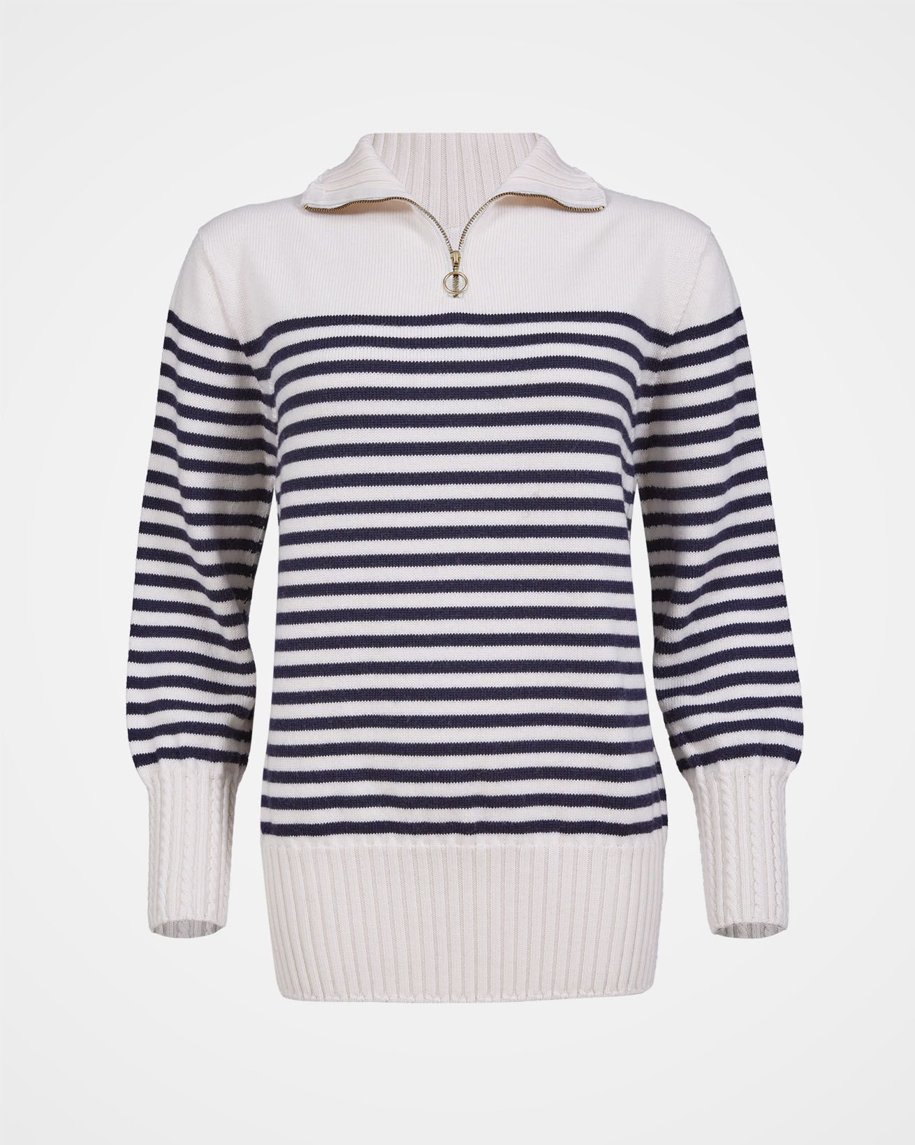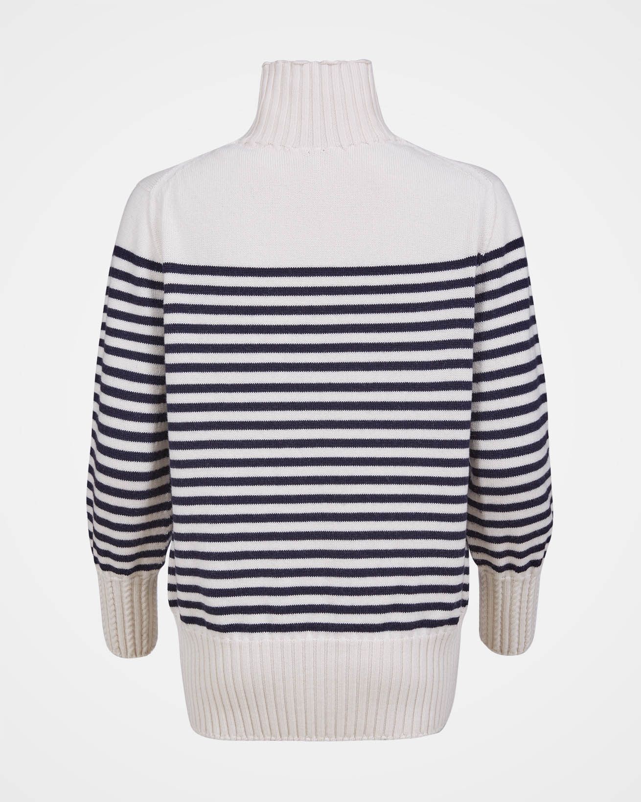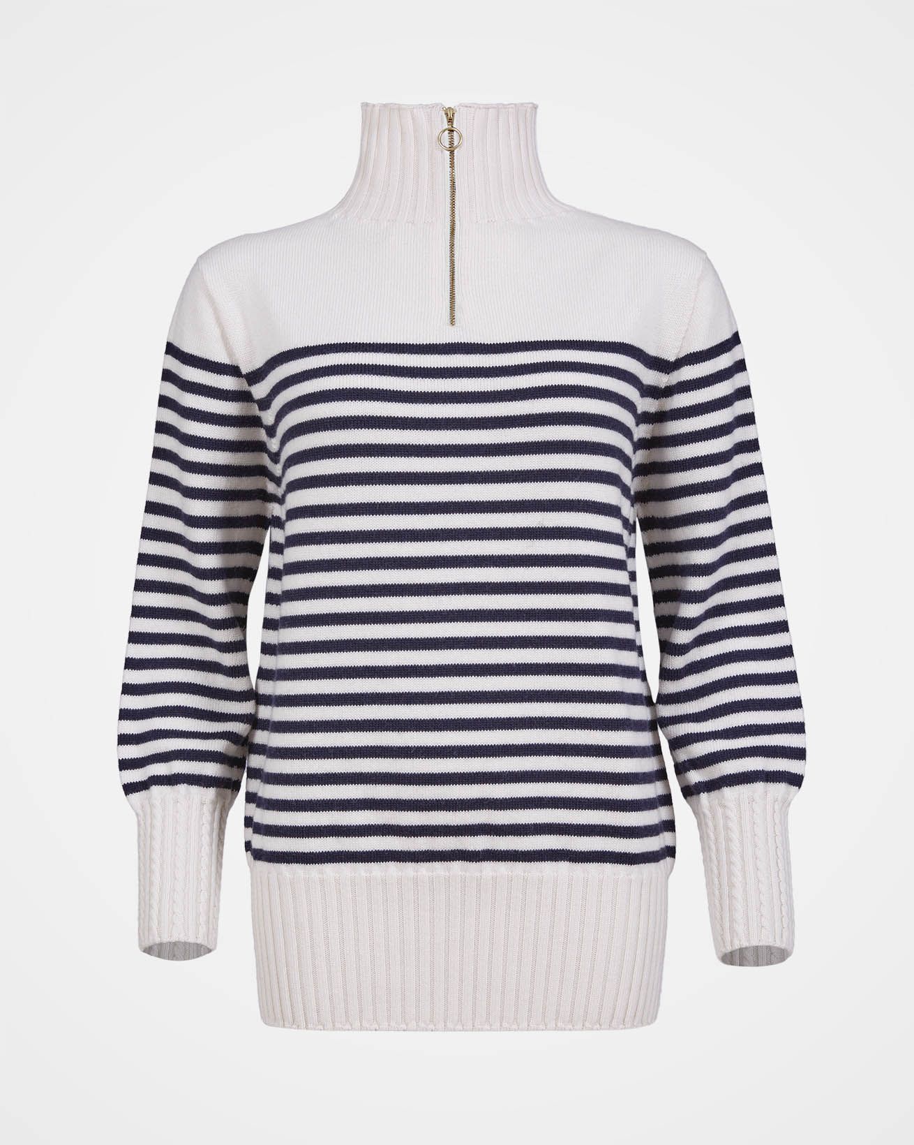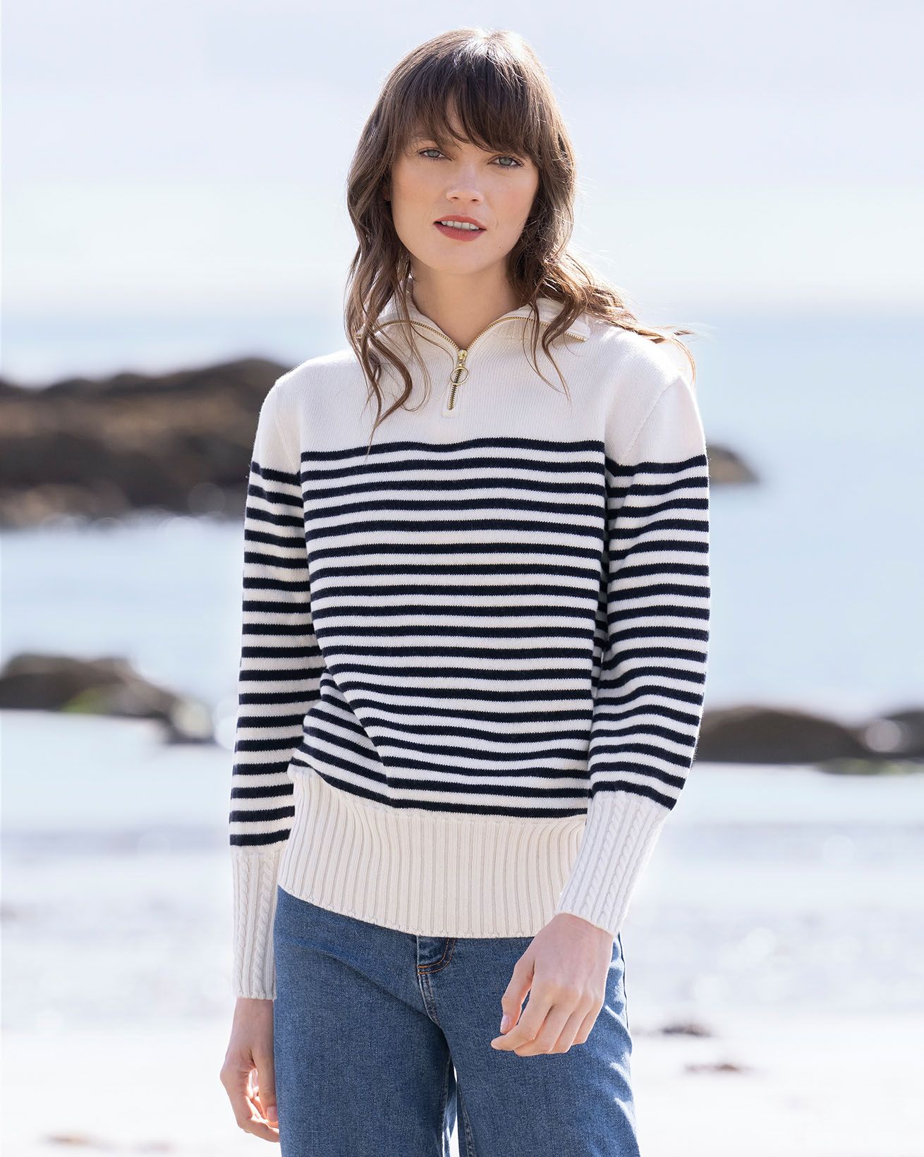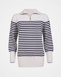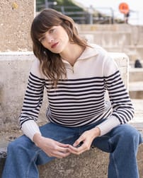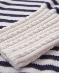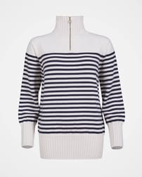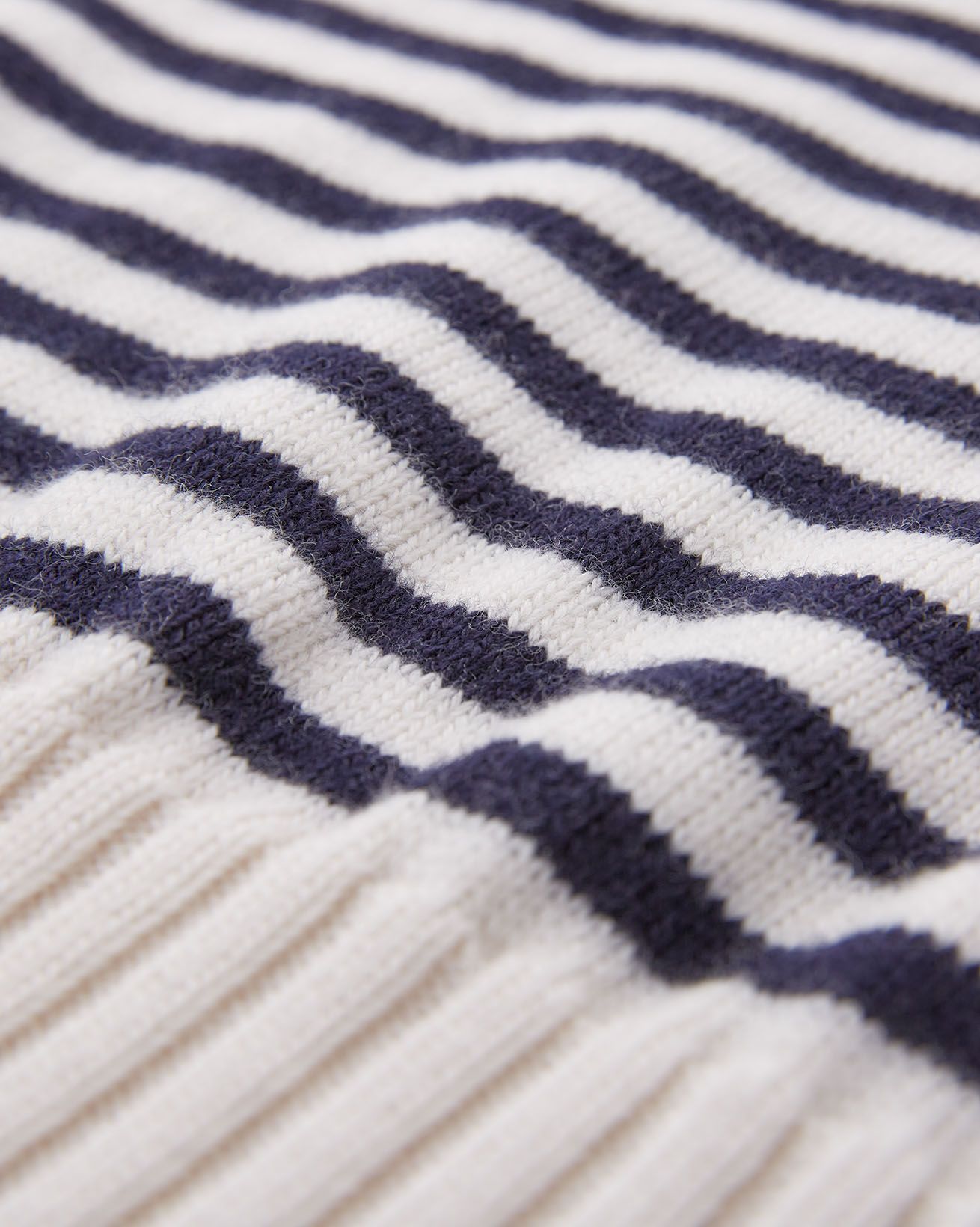 This seamless jumper makes the nautical look work for winter by combining classic hues of navy and ecru in a heavier-weight version of our much-loved merino yarn.