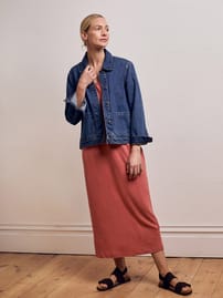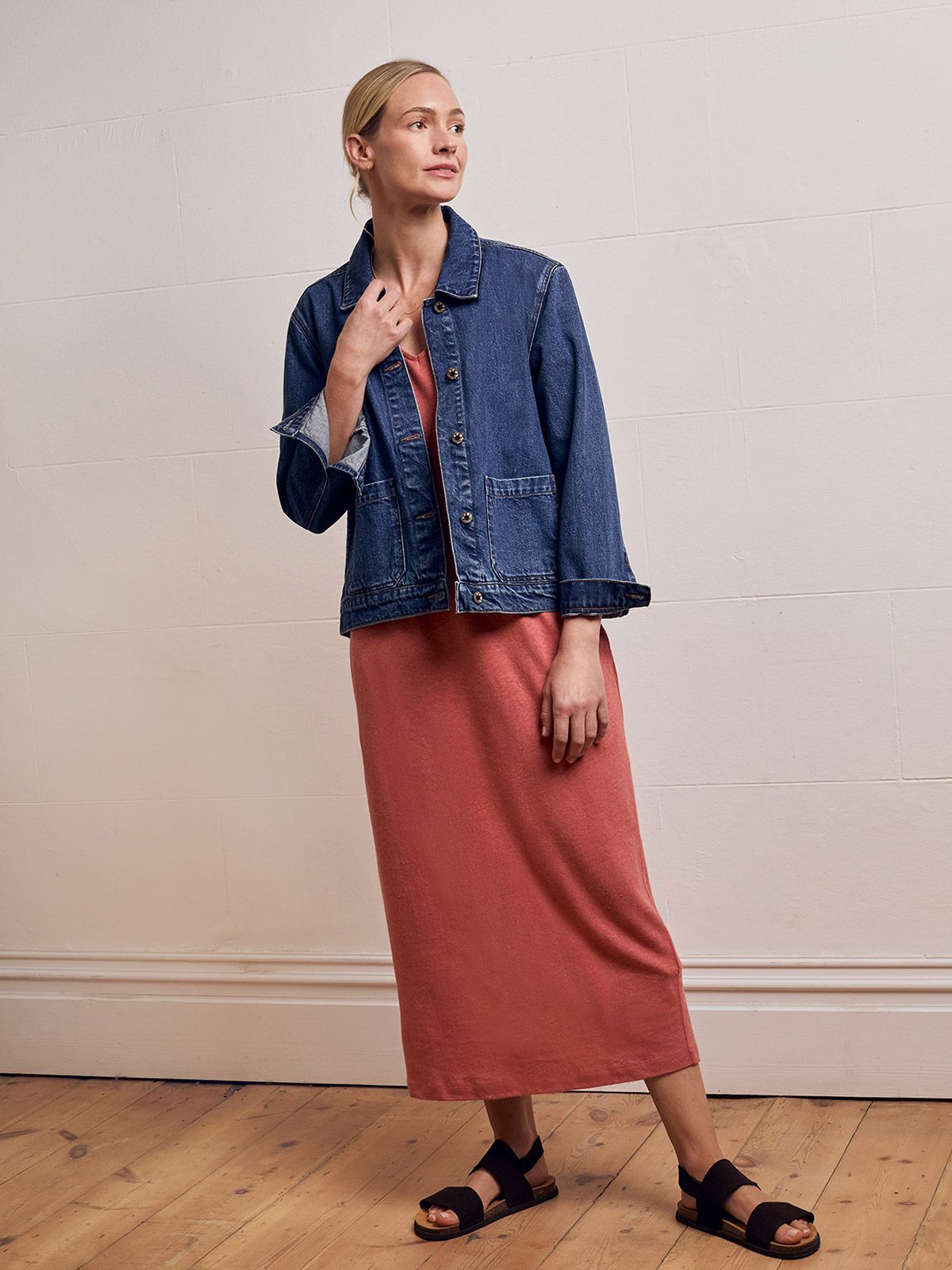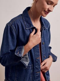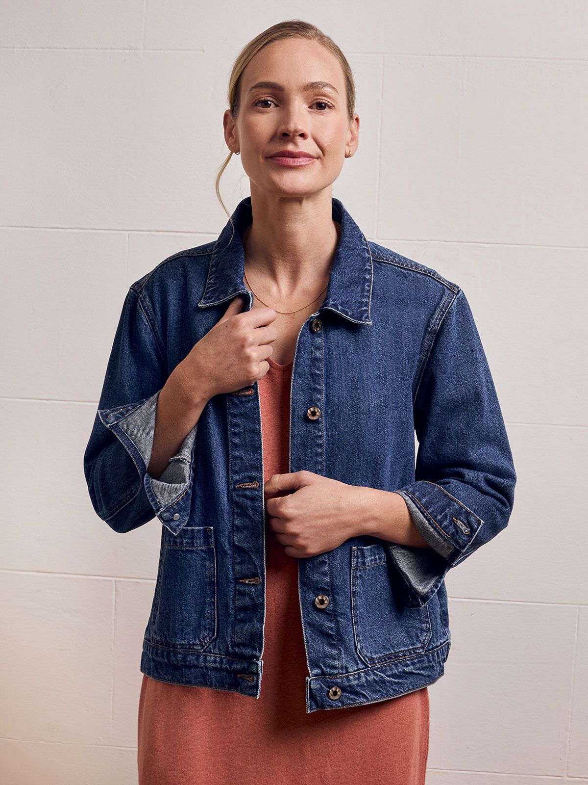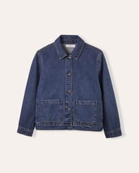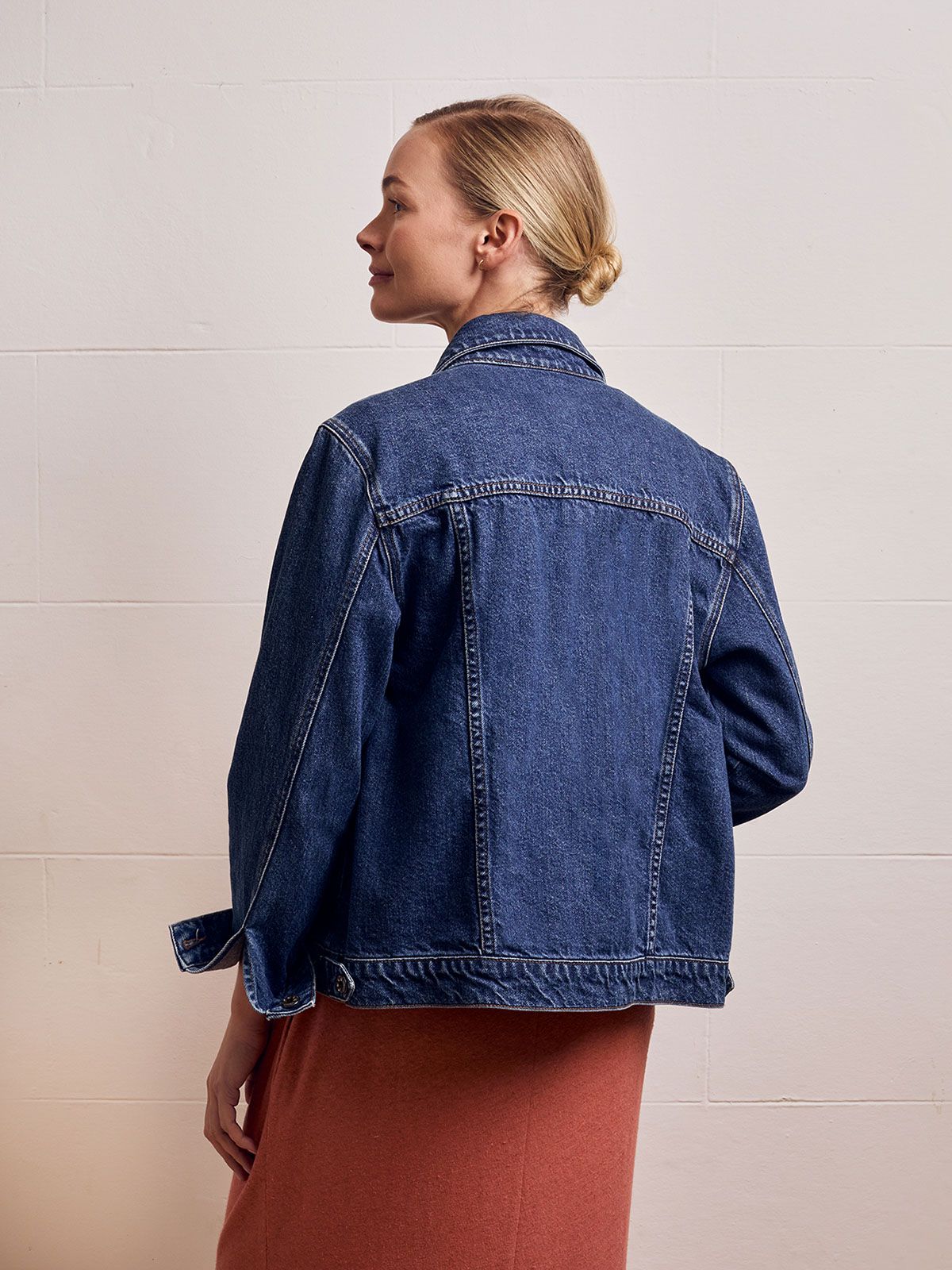 This boxy, collared denim jacket features practical patch pockets and a stud popper fastening for a clean, functional finish. Crafted from durable 12 oz denim, it offers a timeless appeal with a sturdy feel, making it a reliable choice for everyday wear.