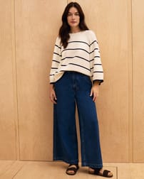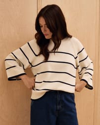 This boxy jumper features a bold intarsia geometric pattern, inspired by a print from our woven range and crafted in a soft mohair blend. The drop shoulder and ribbed trims add subtle detail, while the carefully scaled design integrates seamlessly with the collection’s natural textures and tones.