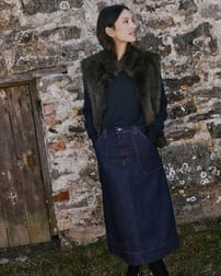 Our reversible Toscana gilet is crafted from soft Toscana sheepskin and features a stand collar with a tie-front fastening. Made in Great Britain, it offers versatile, heritage-inspired warmth that can be worn either way, combining practicality with enduring quality.