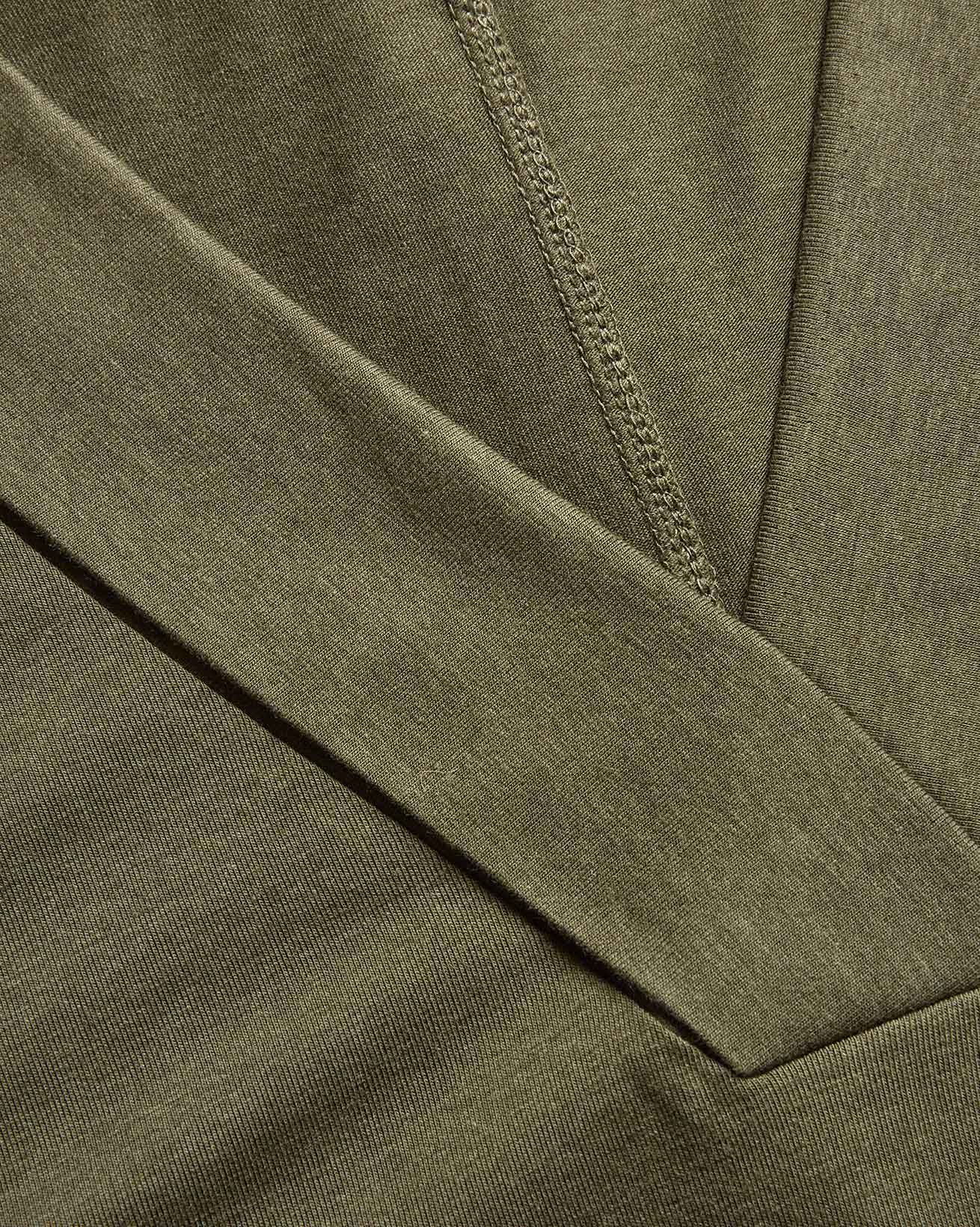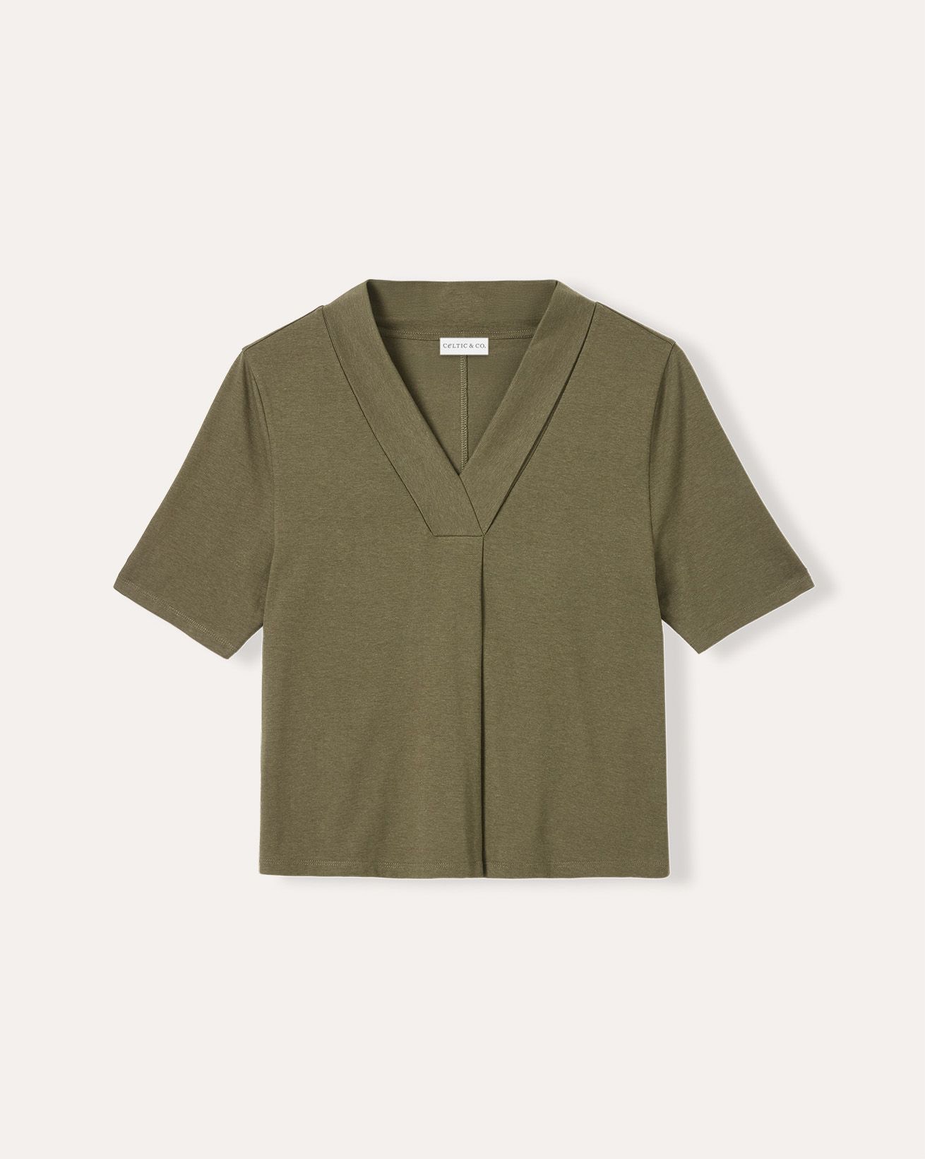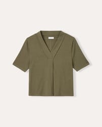 This relaxed-fit t-shirt features a distinctive shawl neck and short sleeves, offering effortless comfort in a soft bamboo-derived fabric. Designed without fastenings for a smooth silhouette, it blends natural fibres with thoughtful simplicity, making it a refined choice for everyday wear.