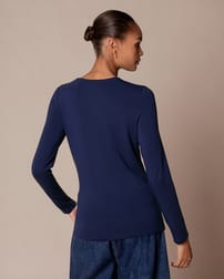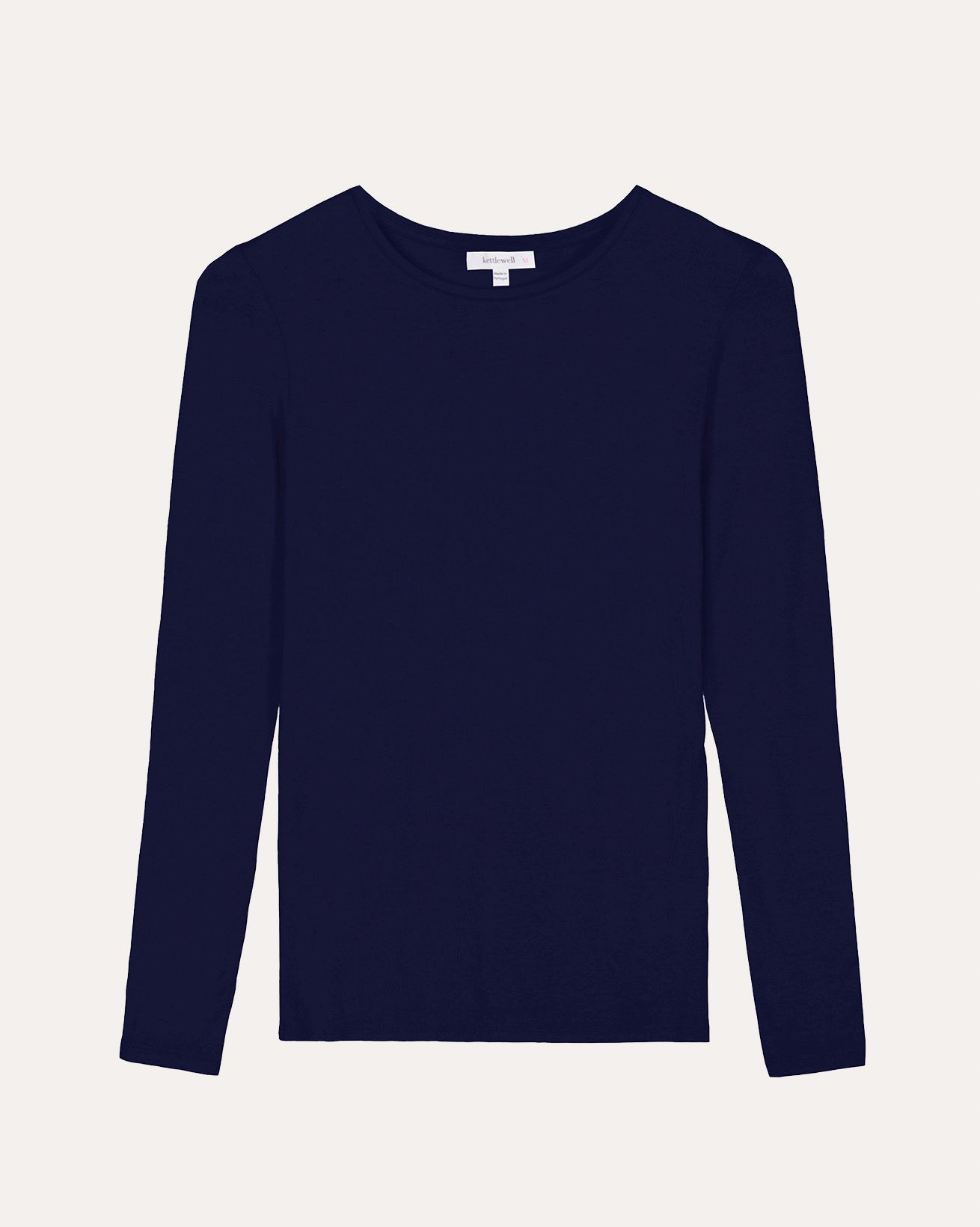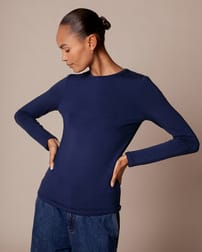 This fitted top, featuring a classic crew neck, long sleeves, and a longer length for superb coverage, is single layer and stitched on the inside for a polished finish making it perfect for layering. Made from a fine modal-elastane blend, it’s beautifully smooth, lightweight, and breathable. It pairs seamlessly with skirts, jeans, or trousers. A perennial customer favourite, year after year.