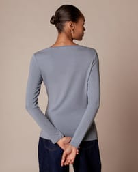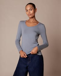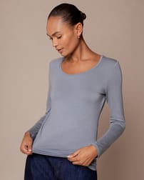 Enjoy effortless layering with this fitted scoop neck top featuring long sleeves and a longer length. Crafted from our signature silky modal-elastane blend, the smooth, lightweight fabric gently skims the body for a slinky, comfortable fit. Its single-layer design means it sits neatly under other pieces without bulk making it perfect for layering under ;knits or styled solo with skirts, jeans, or trousers.