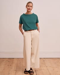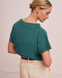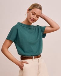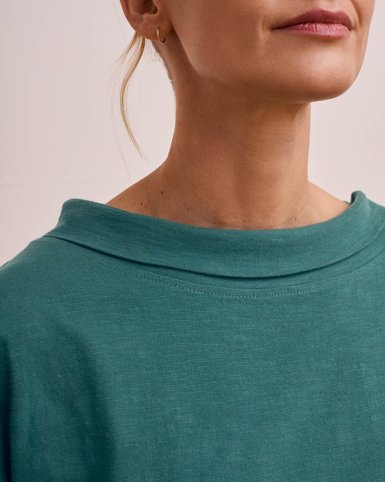 A casual staple with a boat neckline and fold-over collar, this tee’s straight fit and grown-on sleeves make it perfect for relaxed dressing. The slub texture adds visual depth for a versatile, laid-back style.