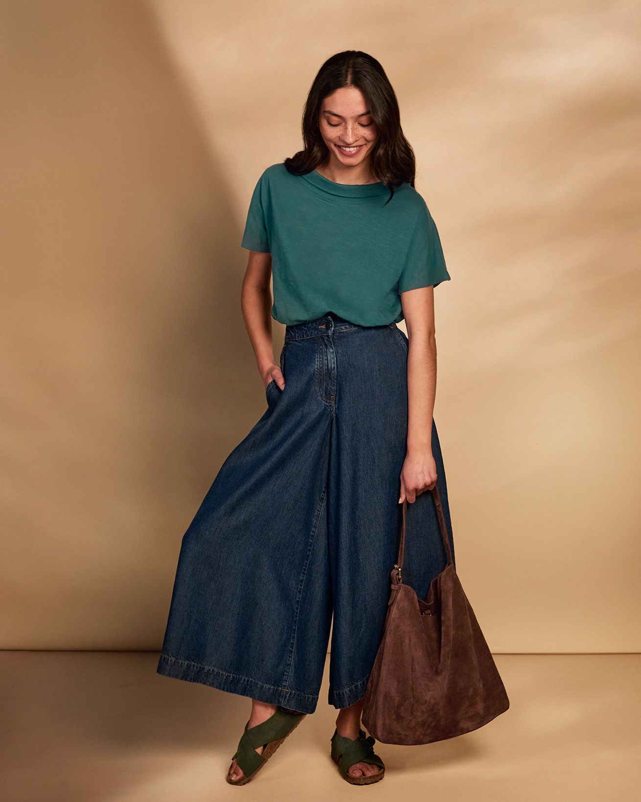 A casual staple with a boat neckline and fold-over collar, this tee’s straight fit and grown-on sleeves make it perfect for relaxed dressing. The slub texture adds visual depth for a versatile, laid-back style.