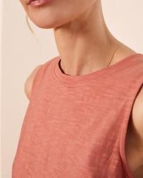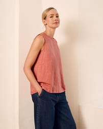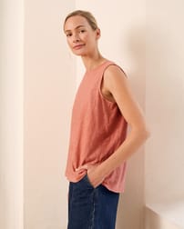 This sleeveless tank features a crew neckline and a flattering swing shape, making it a versatile piece for warm days. Crafted from organic cotton, it offers comfort and breathability, perfect for casual outings or layered looks.