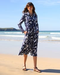 This collared shirt dress features a neat fit and midi length, offering a refined yet relaxed silhouette. With coconut buttons adding a natural touch, it’s a versatile piece that transitions effortlessly from day to evening.