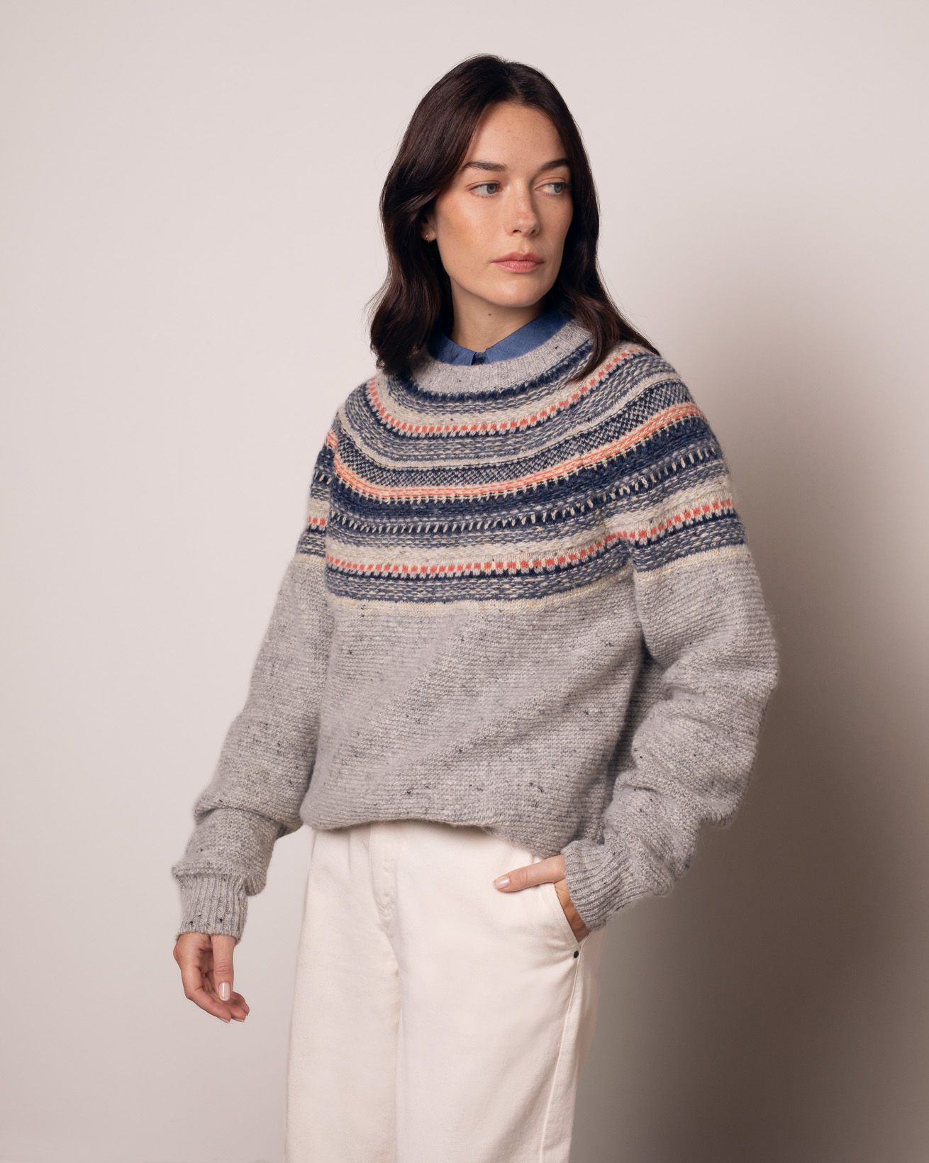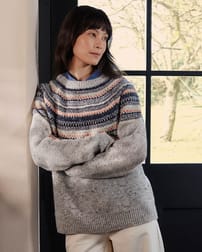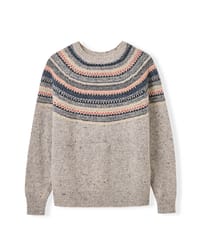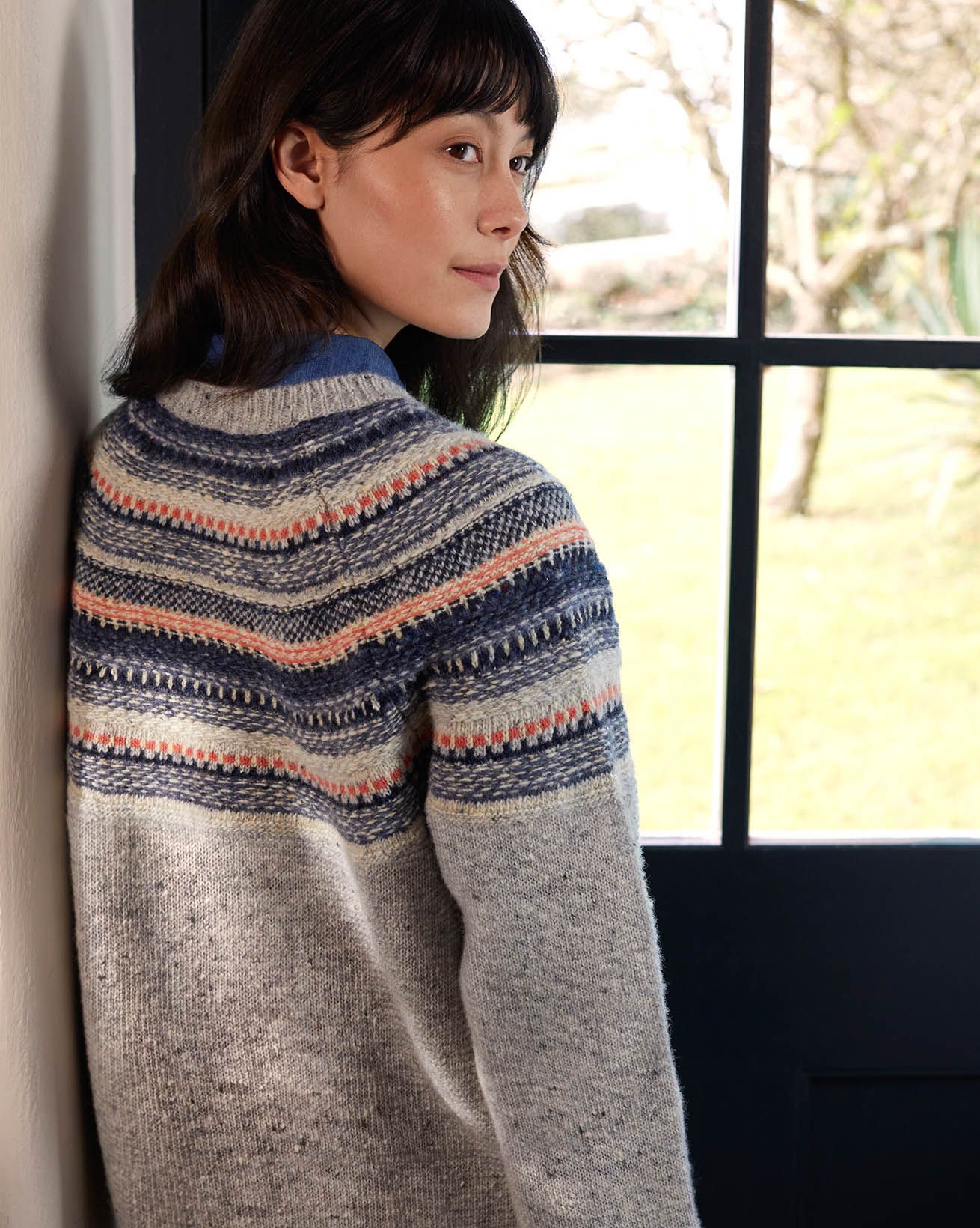 Crafted from authentic Donegal Merino Wool blended with alpaca, this button-through top captures the wool’s signature mix of rustic charm and luxurious softness. Spun in Donegal, Ireland, the yarn features up to six individual colours with seven or eight flecks scattered across the surface, giving the knit its rich, dimensional character. Finished with a crew neck, grown-on sleeves, float-stitch yoke detailing, and ribbed trims, it’s a warm, regular-fit essential.