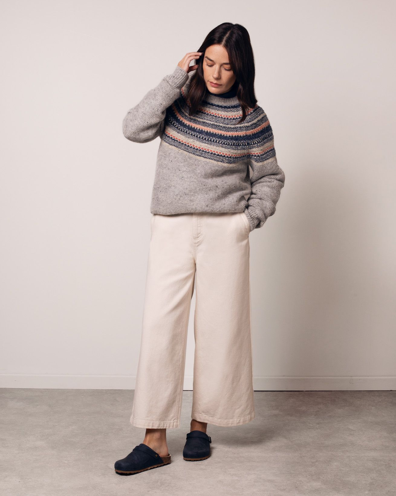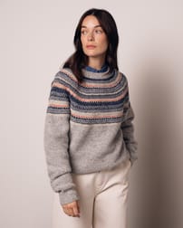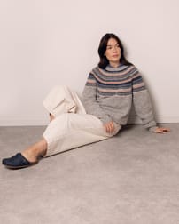 A luxurious, hypoallergenic fiber, alpaca wool is exceptionally soft, lightweight, and lofty. It offers warmth without bulk and remains breathable and gentle on the skin.