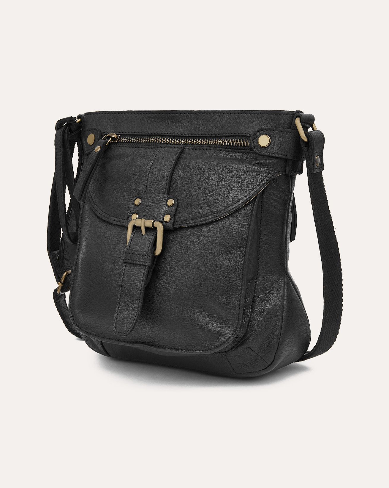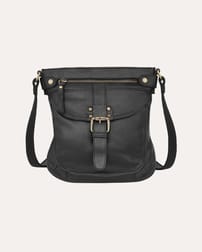 Designed in buttery soft leather accented by antique-effect metal trims, this contemporary bag has a wider base than our classic cross-body styles, which gives you more space for your daily necessities.