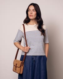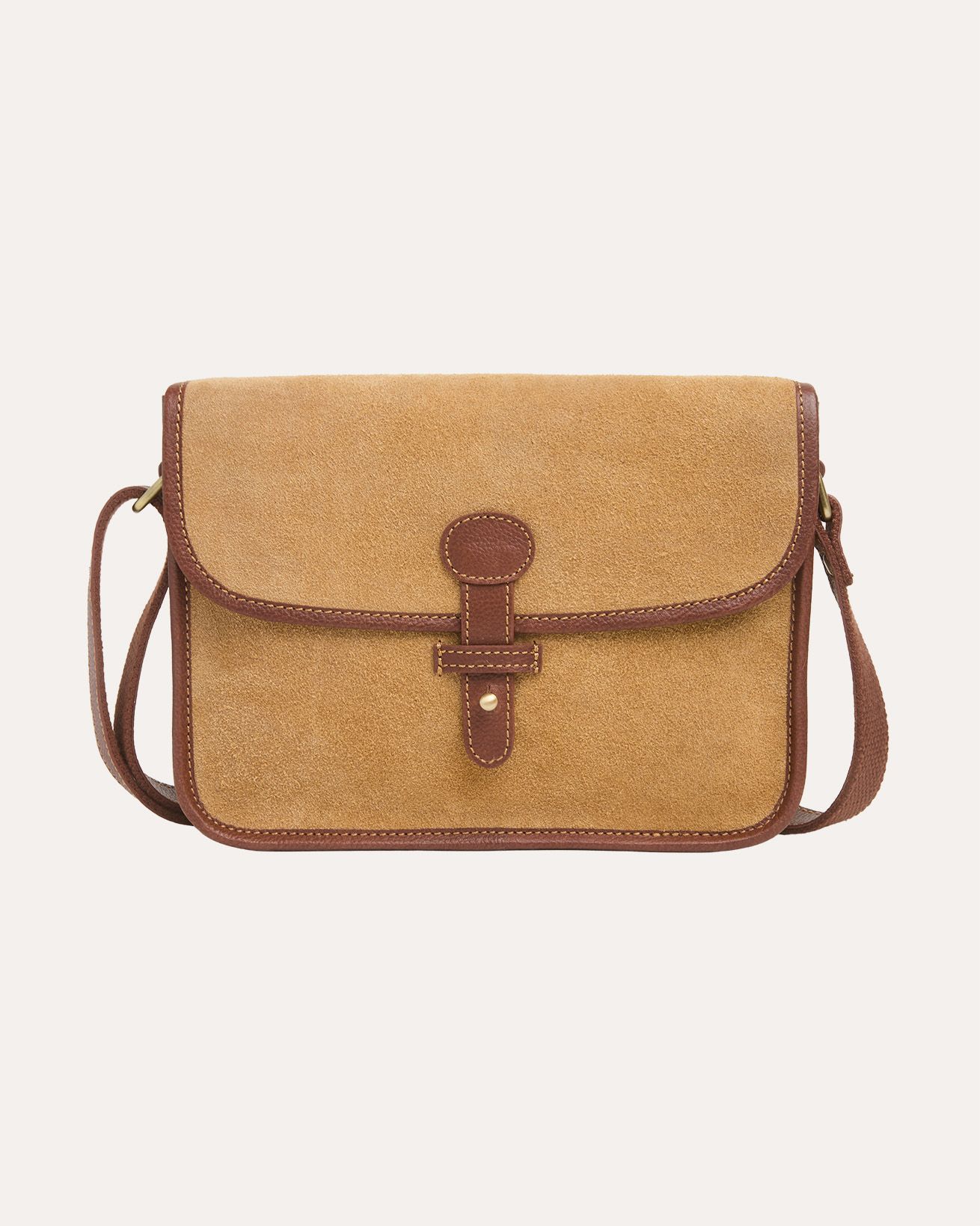This cross body bag features a stud strap fastening and a contrasting colour trim, combining practicality with subtle detailing. Designed for everyday use, it offers a refined yet understated accessory option that complements a natural, confident style.