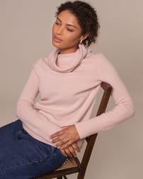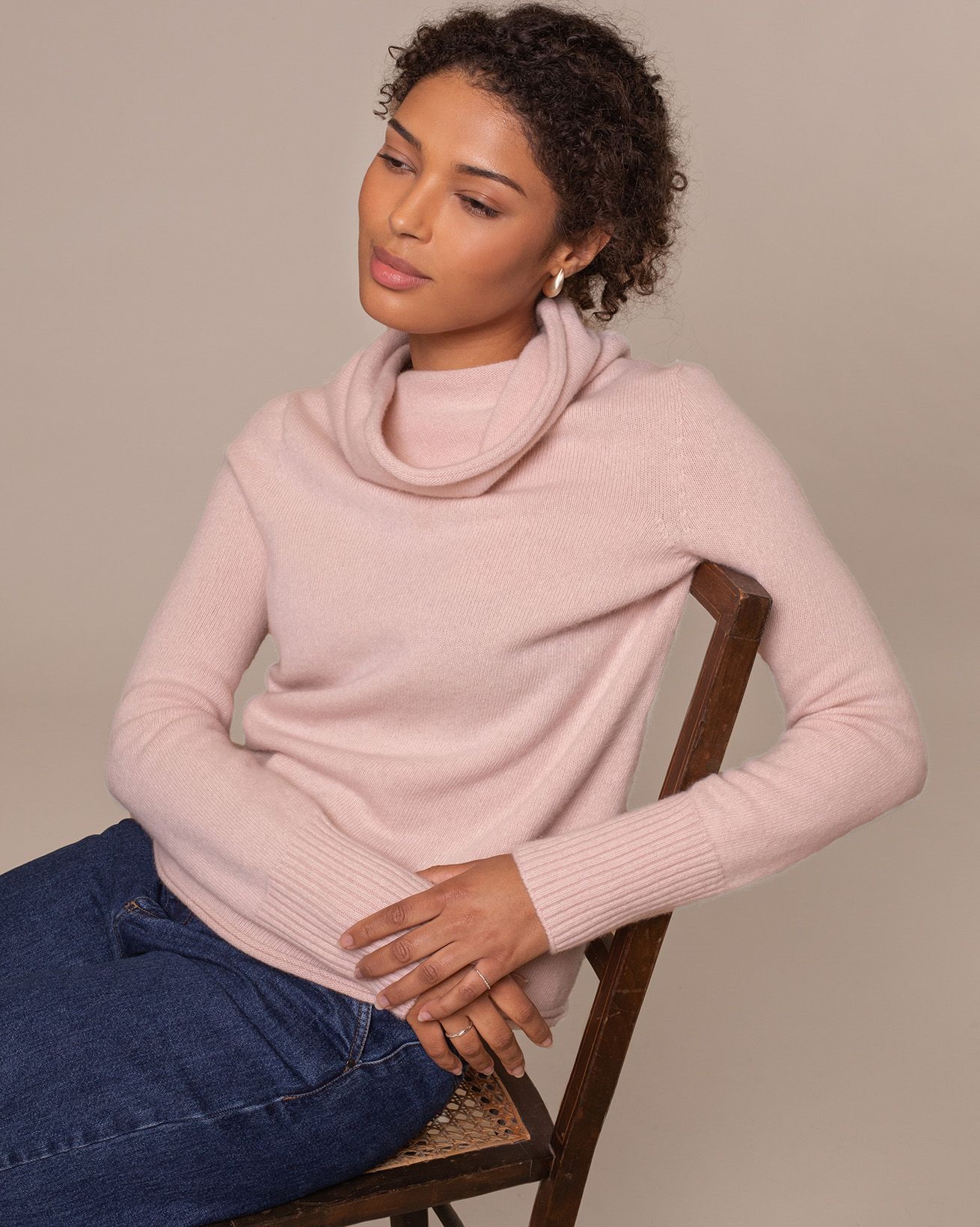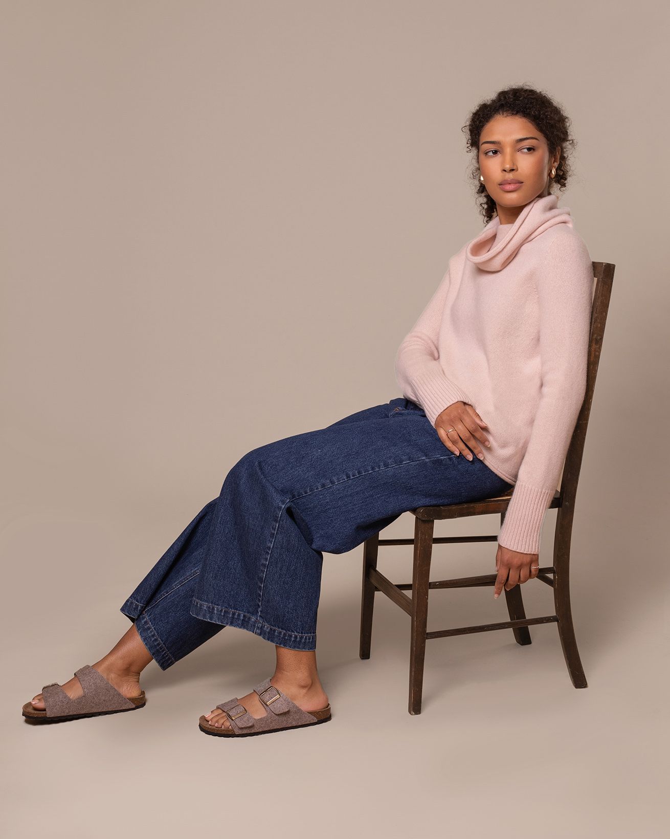 With a drapey cowl neckline and a straight fit, this jumper is designed for effortless comfort. The ribbed turn-back cuffs and rolled cast-off hem add a relaxed touch, making it a perfect choice for cosy days at home or casual outings.