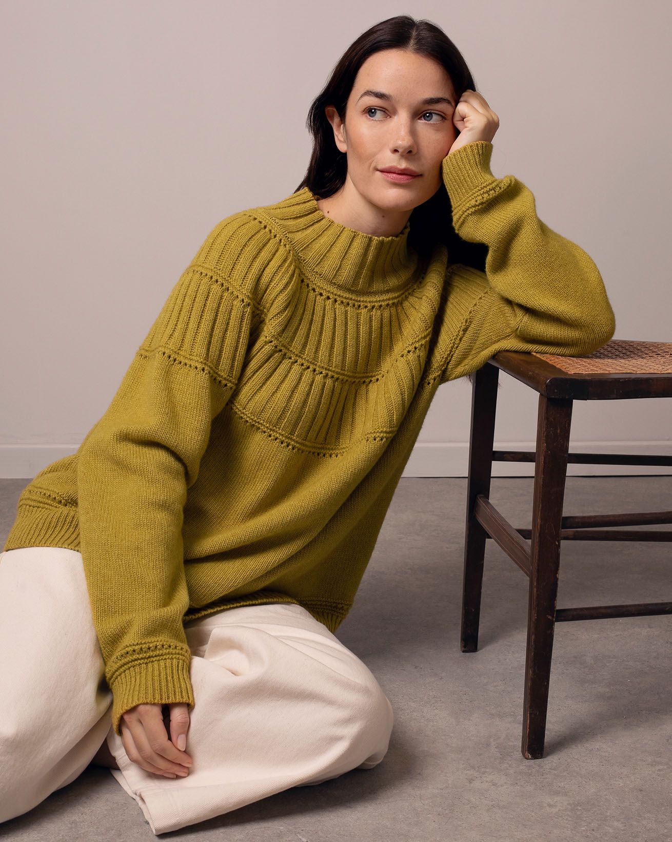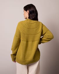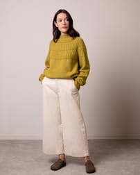 This wool-cotton blend jumper is designed with a slouchy fit and regular length, featuring a radiating stitch detail across the yoke. Finished with a funnel neck and raglan sleeves, the breathable yarn makes it a versatile choice for layering between seasons.