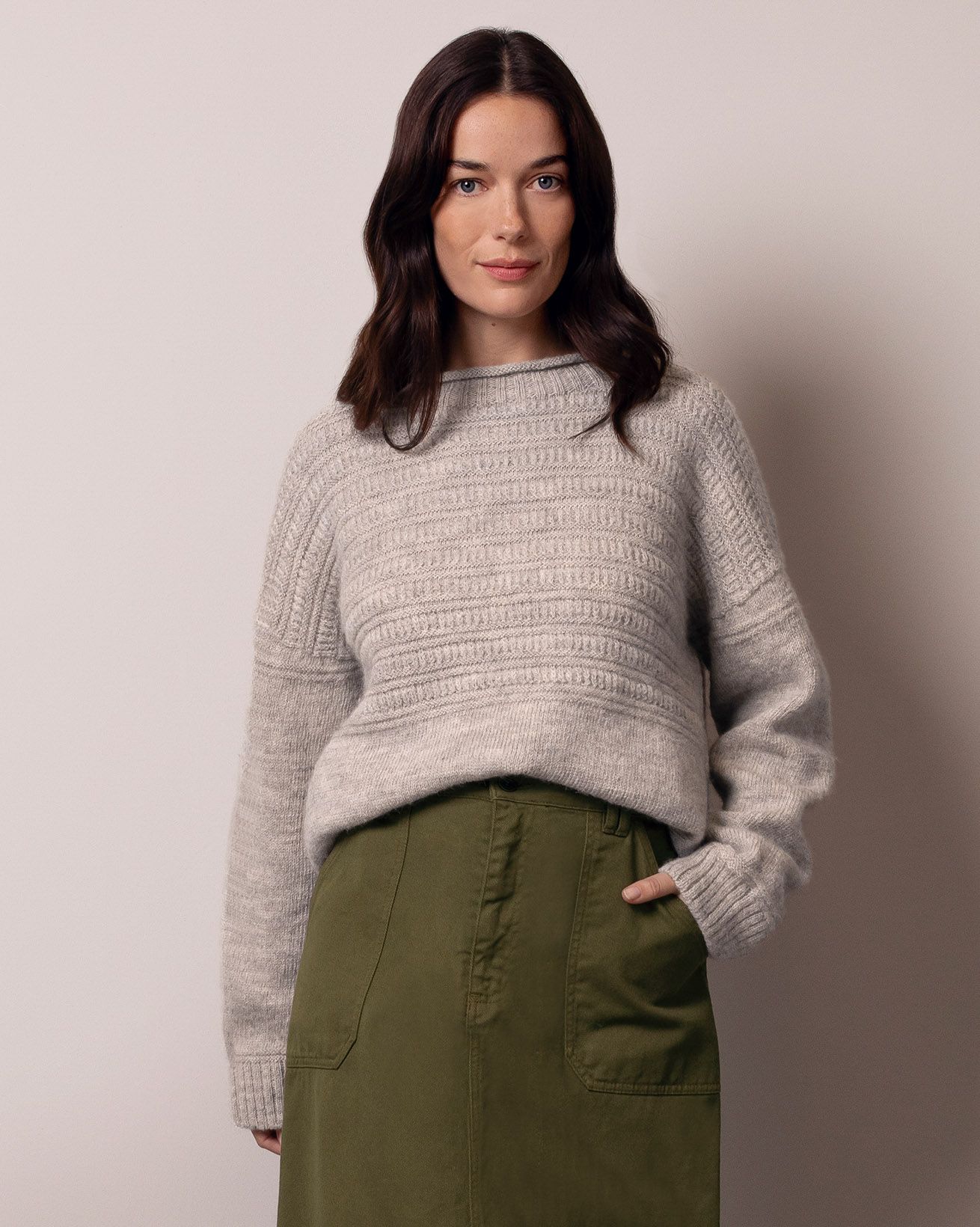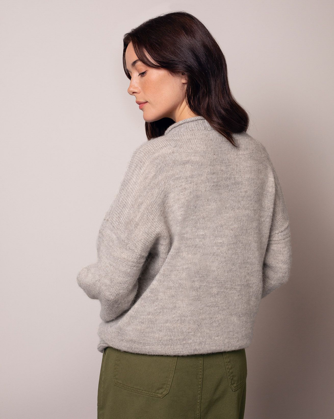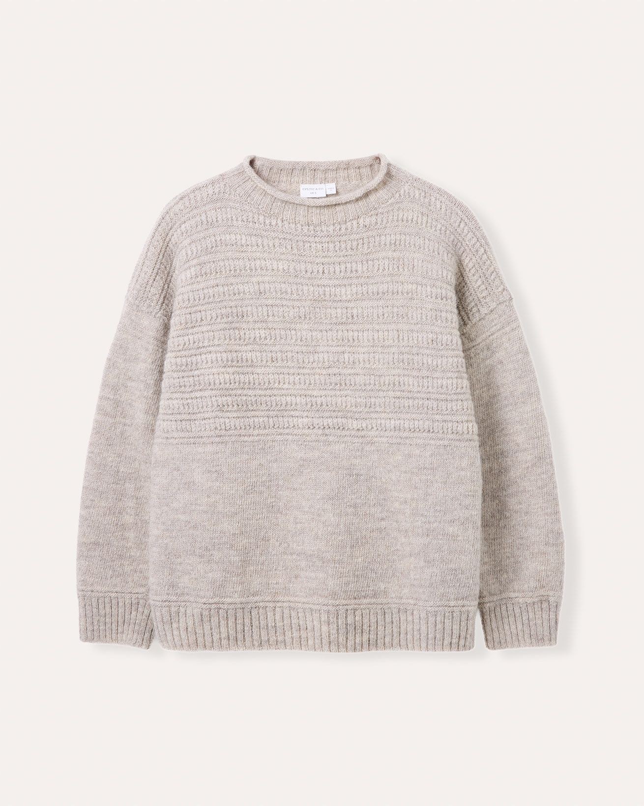 • Minimal gansey details on cuffs and hem