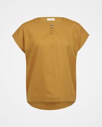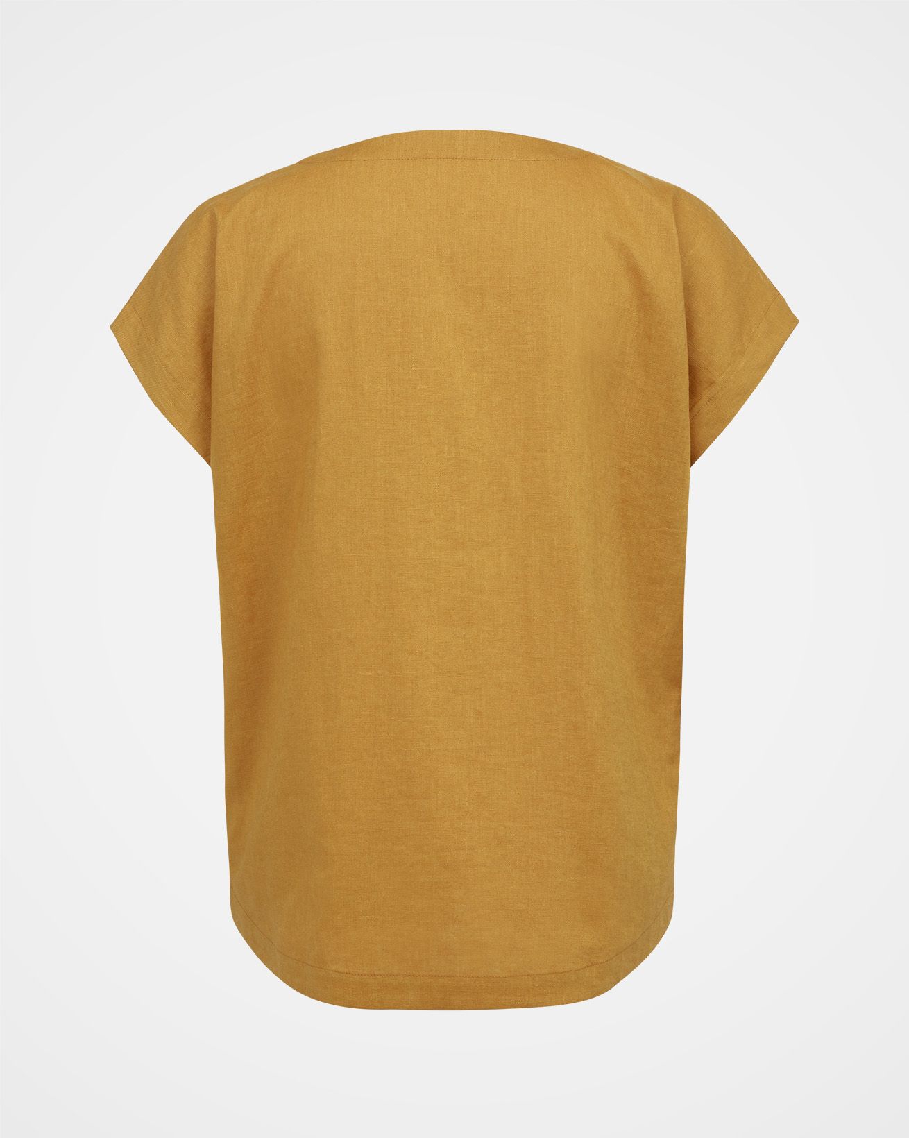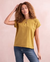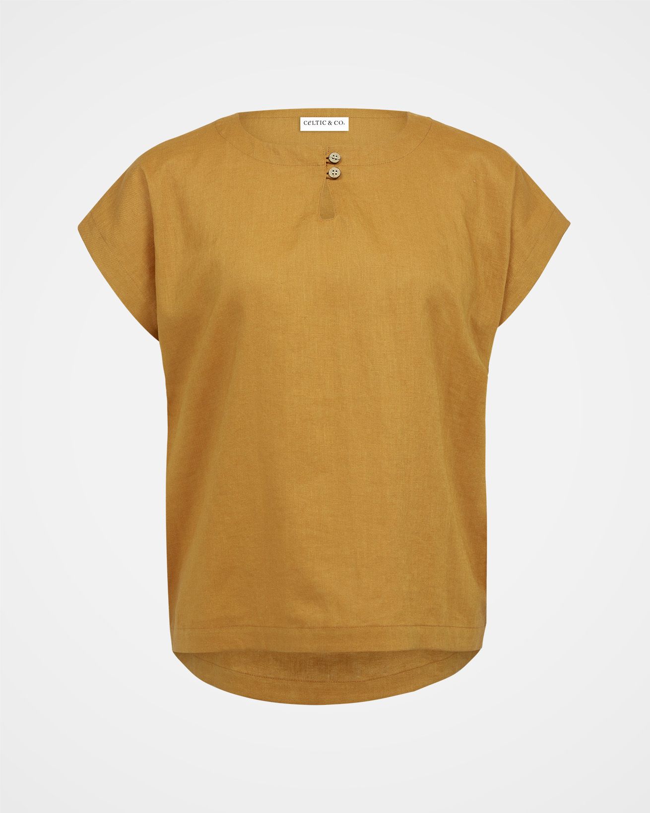 This mid-weight top features short, grown-on sleeves and a curved, dropped hem. The large scale gingham print is in a wonderful, summery colour, woven from yarn-dyed linen. A crew neckline is complimented with a keyhole detail, two coconut buttons and loop fastenings.