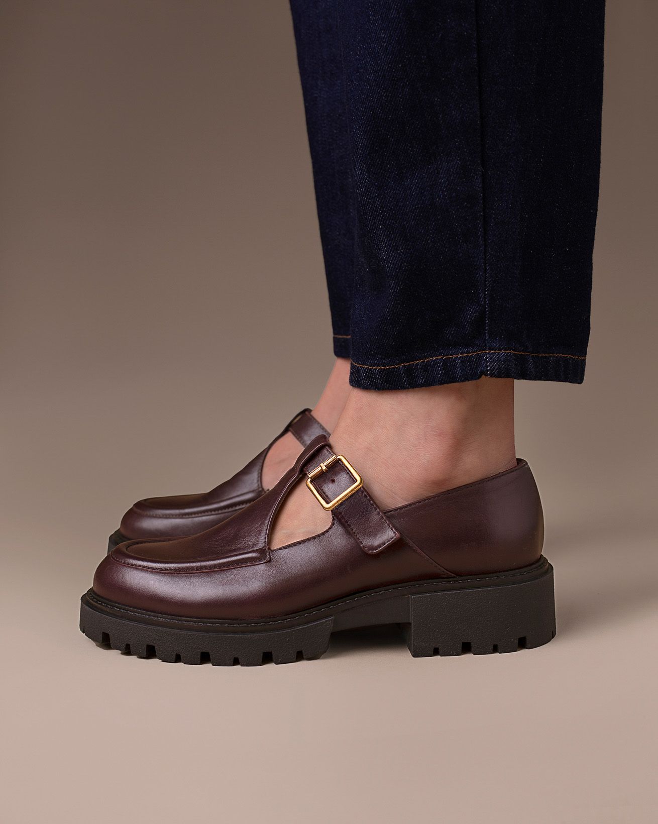 Crafted from Leather for both the upper and lining, these chunky T-bar loafers feature a buckled strap, seaming detail around the toe, and a robust outsole with a leather welt.