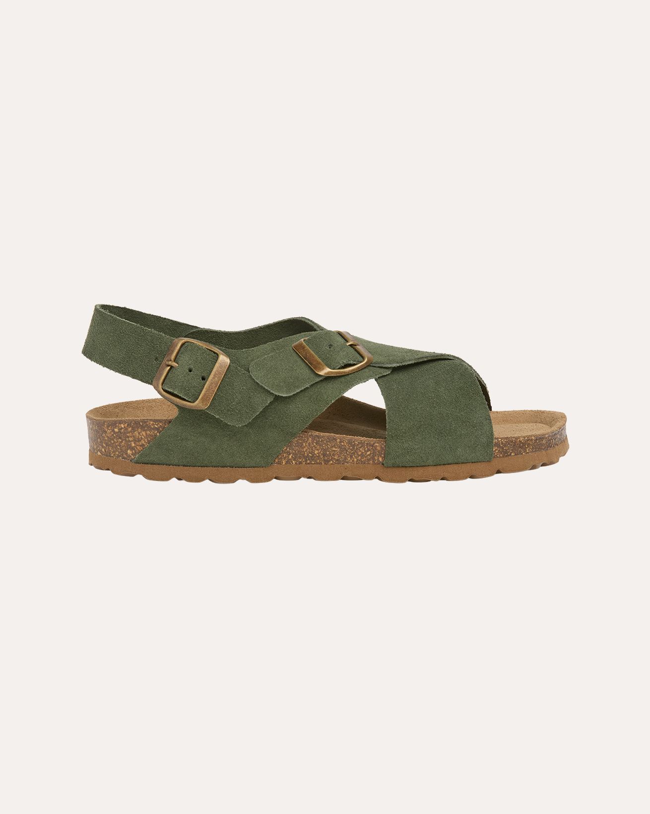 The slingback strap and upper straps can be adjusted using the antique-effect brass buckles, while the moulded cork insole, lined with suede for enhanced breathability, will cup and cushion your feet throughout the day.