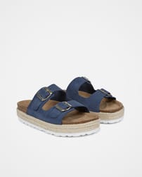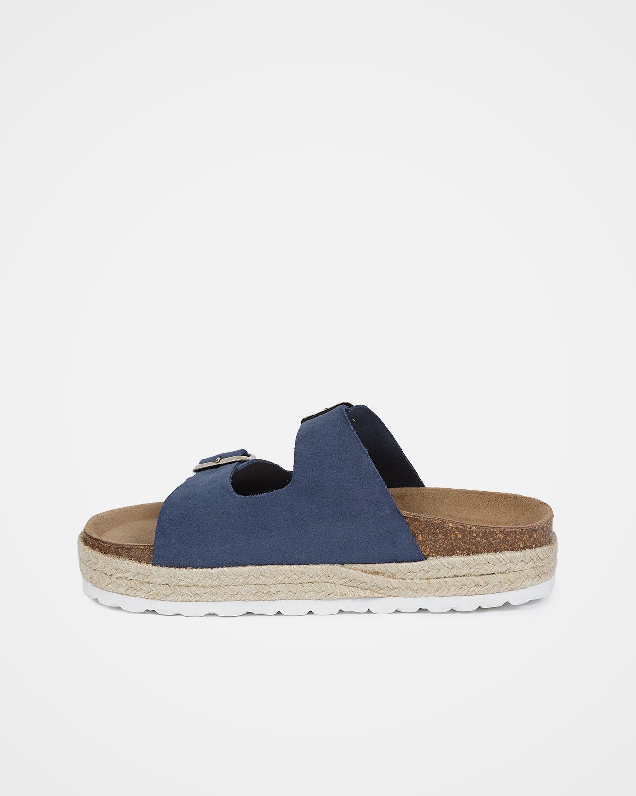 Your new go-to summer shoe. They are suitable for both beach days and city breaks, and can be worn with any outfit. Featuring a double strap, metal buckle design, and a plaited trim around the platform, the comfortable cork and suede sole will keep you comfortable all day.