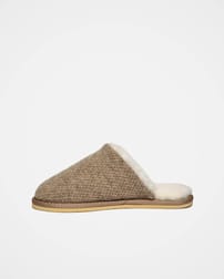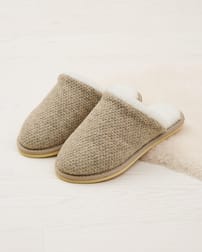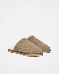 Each pair of slippers is crafted with a textured woollen outer and lined with dreamy shearling, encasing your feet in cloud-soft comfort that you'll never want to remove.