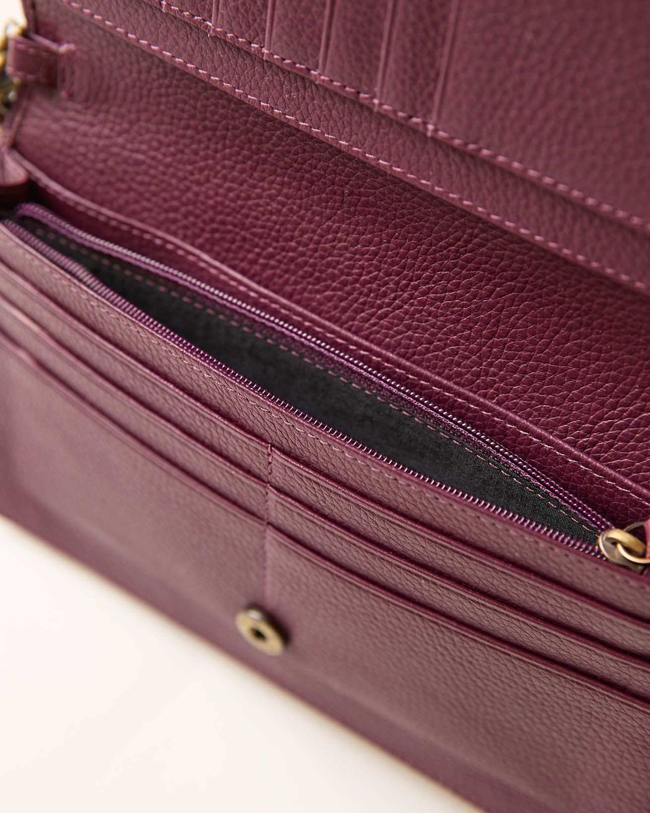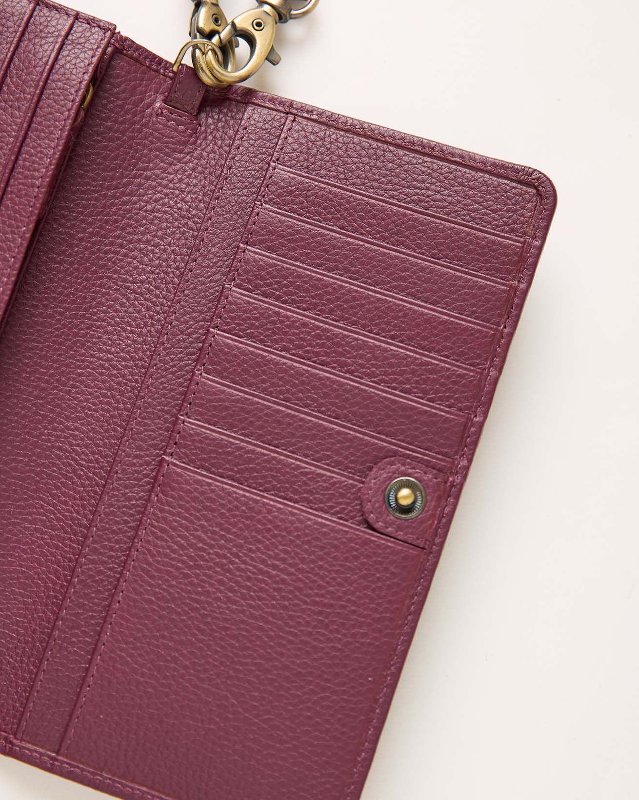 Designed in a lovely, rich leather accented by antique metal finish hardware, our soft phone bag is stylish and on-trend. Features include a cross body strap for easy wear that can be clipped off, with the choice of a handy wrist strap or no-strap option. The front flap with popper fastening detail allows for easy access but added security. This versatile design provides room for most smartphones plus your daily essentials, including credit cards and an inner pocket for paper money.